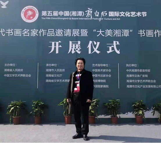 要知道,第五届中国(湘潭)齐白石国际文化艺术节当代书画名家作品邀请展上展出的书画作品只有81件,参展的不乏徐里、张道兴、谢志高这些美术界大咖的作品。难怪吴辉忠如此兴奋,他所创作的《流芳千古》山水国画能在众多优秀作品中脱颖而出,登上这个高雅的艺术殿堂,实在难能可贵。