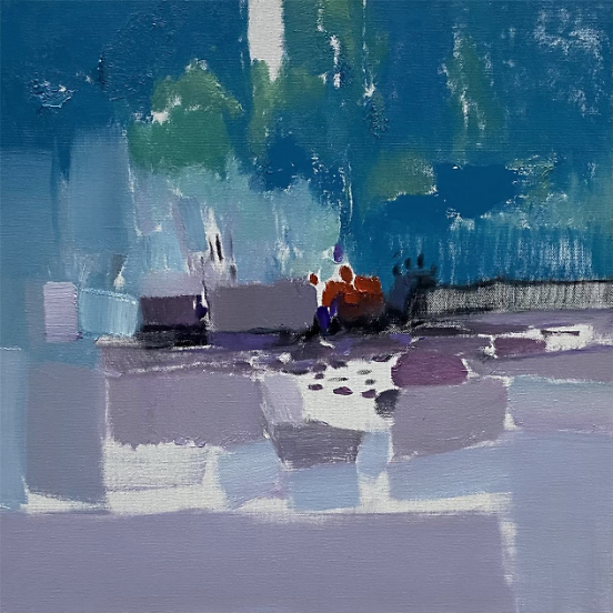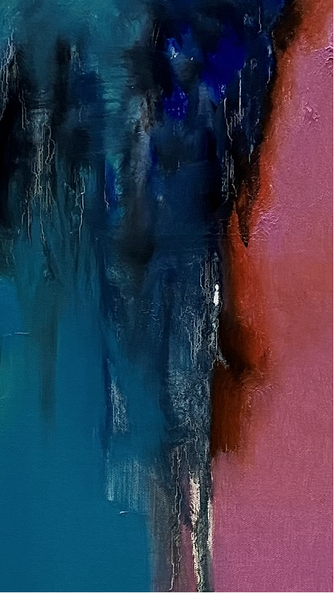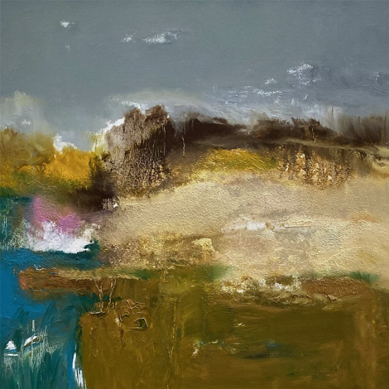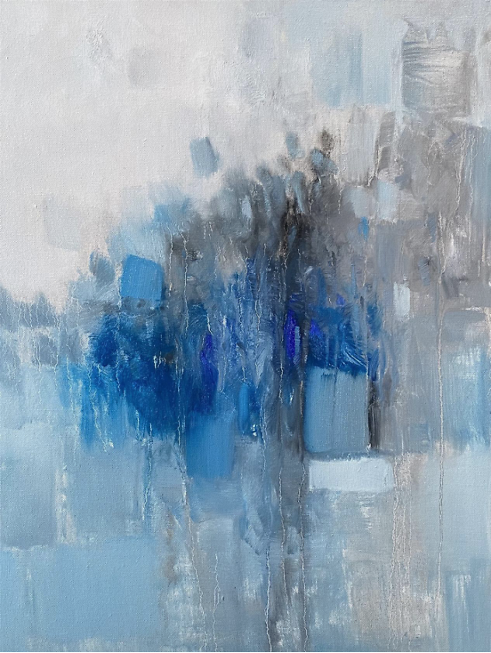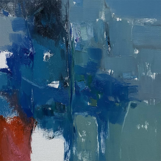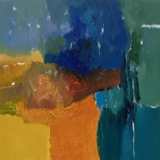 色彩的色彩 王政强 俞红老师的作品色彩擅画,时而安静宜和,时而通透清亮,也时而澎拜波澜,既有大块面的率真,也有朦胧的细腻,在流风,在山岗寻意,在隔岸,在呼唤,手法多样性的情绪流露,印象深刻。让我们观到了色彩背后的光芒,直指人心。艺术家是社会发展的先觉者,总是会有不同常人般对城市生活的反思和认知,俞红老师的作品,不怪异,不刺激过载。大自然的恩赐,生活实践的沉淀,造就了画家不卑不亢,游刃有余的简真气质,总能带给我们幸福的美感,温暖而有力量。和俞红老师侃大山,无需设防,轻松自在,画室里瞬间就充满了艺术版的欢乐颂。除了绘画艺术的造诣外,更难得的是她对建筑空间设计的理解和见地,让艺术和设计得到更好的融合。 建筑空间讲究坚固实用美观,但艺术绘画更是空间中提升美学和精神层面不可或缺的载体,俞红老师的绘画作品非常惬和在简约留白自由流动的空间中呈现。