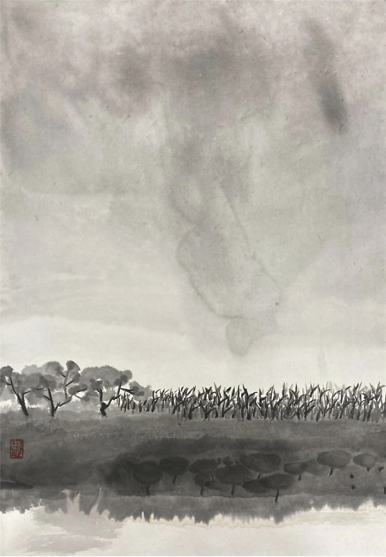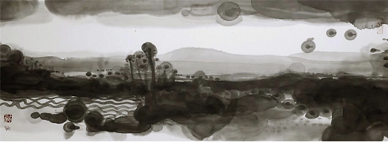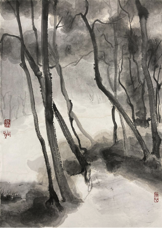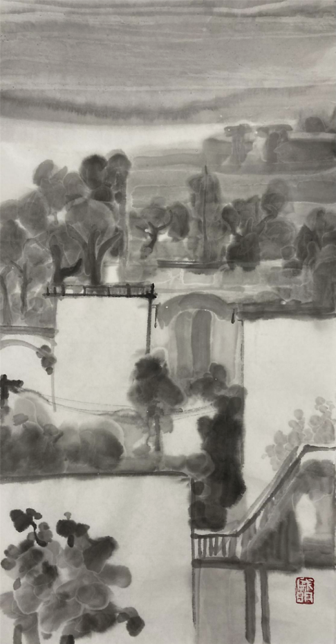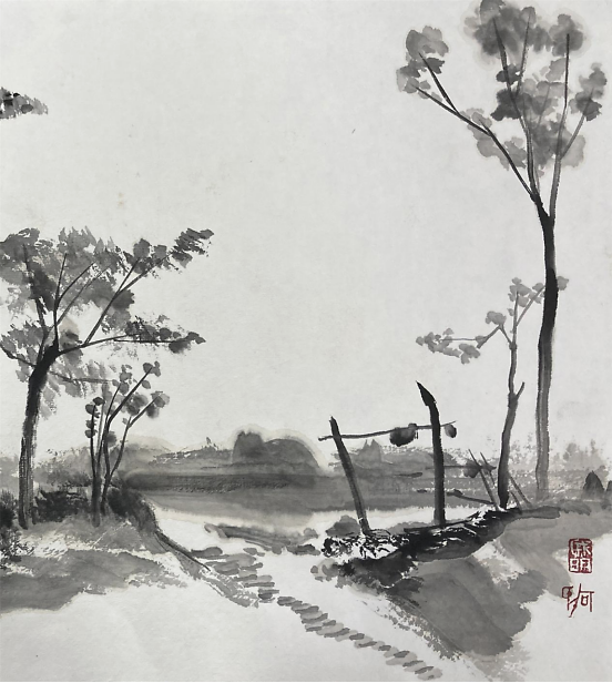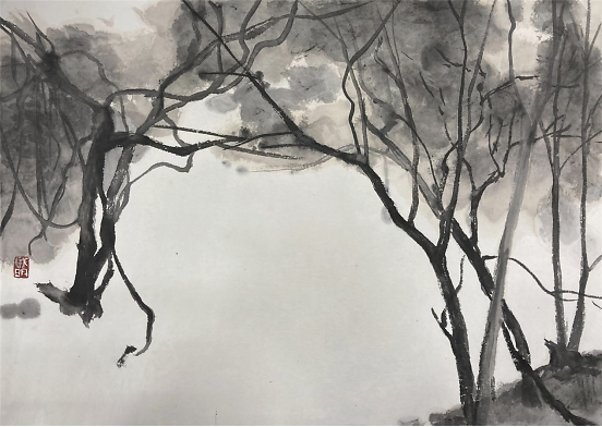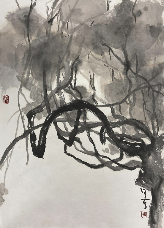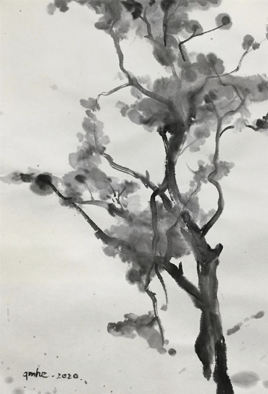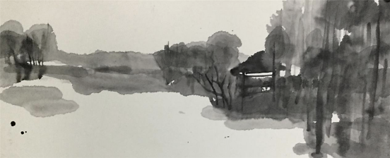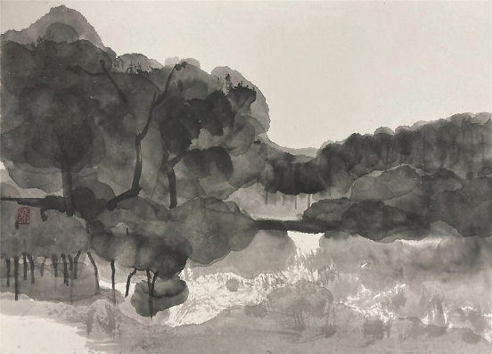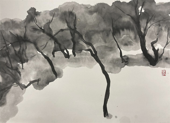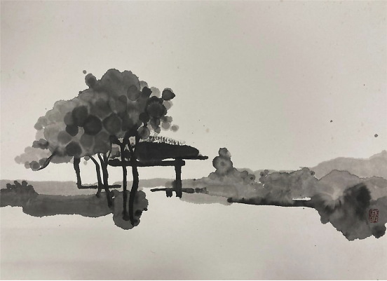 艺术家何戚明的水墨画写生 何戚明是位很感性的艺术家,从他的艺术作品中可以读出,他所传达的景象赞美中都充满了爱。把自己对视觉艺术的认识用最简洁的绘画手法去表现——大道至简。他涉及的画种较多,版画、油画、水墨画等。多幅作品被中国美术家协会版画艺术委员会、上海图书馆中国文化名人手稿馆、湖北美术馆、湖北美术学院等机构收藏,有着不凡的成就。 看了他的近期水墨画写生作品能感觉到他一直在追求视觉画面的节奏美,而他对画面的控制也愈发让观者沉浸其中,重视大节奏的形式变化而忽略细节的表现。并不以‘术’束缚自己对世间万象的客观观照,追寻天地万物的运行法则和规律,在虚与实的幻想中游离,足见他一直苦苦探寻当代艺术的那份执着!可称其为——“以术见道”! 语迟 2021.5