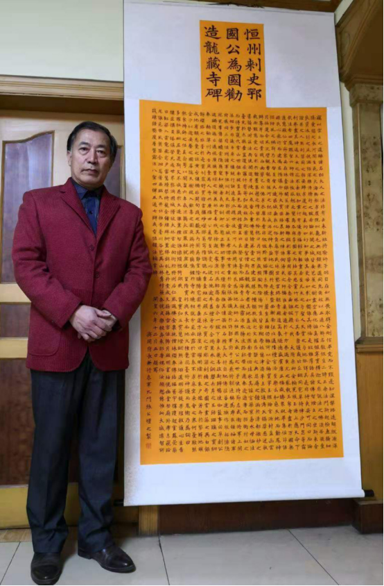 因为曾经担任临济寺方丈有明老和尚的助理,并受聘国学论坛版主十几年,鉴印先生的佛学造诣颇深,在国学研究领域颇多精辟独到的见解和论述,深受学术界关注,国学论坛管理组评价他“对国学论坛的发展做出了重要贡献”。这也是他能够使碑文增补工程得以完成的一个学术保证。譬如碑文“惟此大城,环□所践 ”一句,有释文将泐损之字录为“异”,而鉴印先生同样是在对原碑残存字形处进行了细致的研究,又遍查佛籍文献并无“环异”之词,且文意不通,在细勘漫漶处下部隐约所显方形如日字和捺脚后,排除了“异”字的可能。查所有下部为“辶”旁字,皆与文意不通;又查所有下部为“日”旁字,唯“智”字贴合文意,即“环智所践”。智者智慧,般若智即佛智。《韩非子·显学》云:“智,性也。”《淮南子·俶真》谓:“智者,心之府也。”《管子》说:“四时能变谓之智。”“环智”,则指围绕佛法智慧去实践、履行。仅仅一字之别,彰显的是严谨的治学态度和悬殊的碑文意境。 正是无数个这样严谨入微的认真工作,才使得对《隋龙藏寺碑》书法与文本进行整体研究进展的卓有成效。经过数个寒暑息交绝游、闭门谢客如同禅僧的闭关修行,在无数次查阅了数以百万字计的涉及隋碑的历代史料、佛学辞典经传的漫长时间里,鉴印先生并对魏晋南北朝笔法悉心揣摩和对龙藏寺碑书法精髓得悟于心后,先生终于完成了中国书法史上首次对《隋龙藏寺碑》全部文本的破译补阙和对原碑再现其开皇原貌的实验性复原重刻。21011年11月,他的研究论文“《隋龙藏寺碑》泐损残缺字辨识考析”发表在《中国文物报》,又引起文物界、书法界关注。
