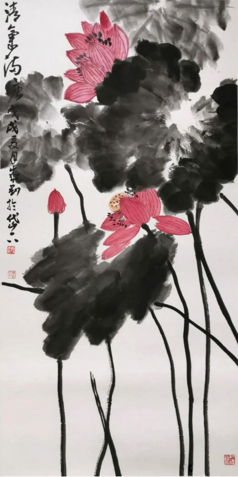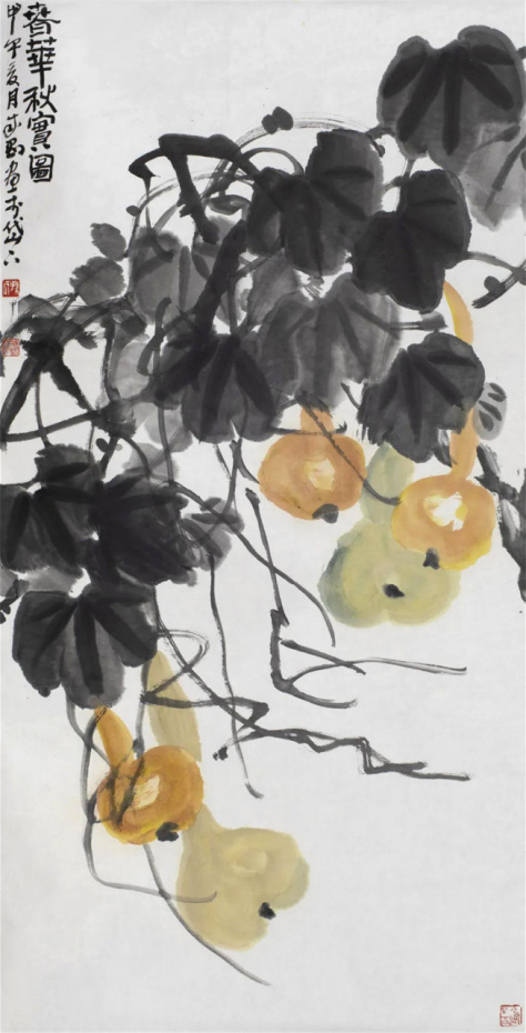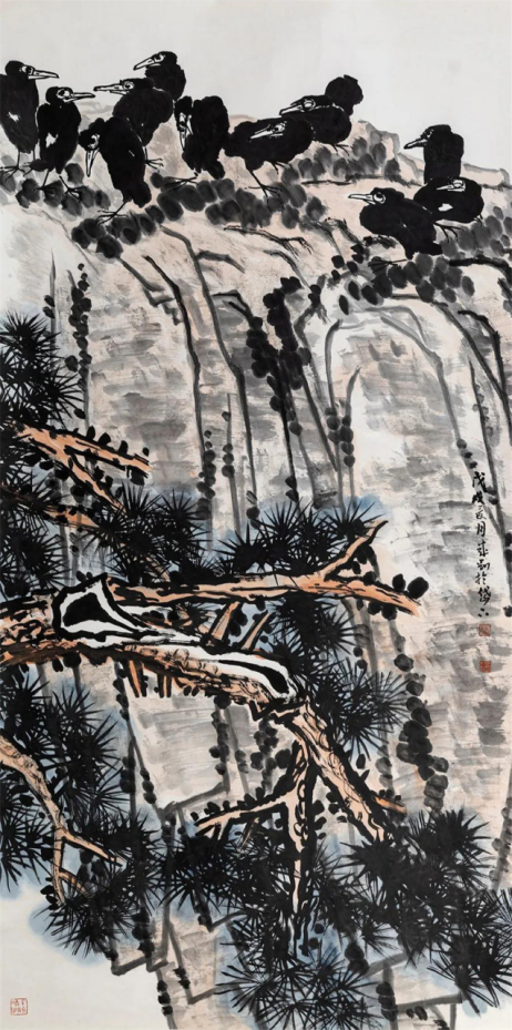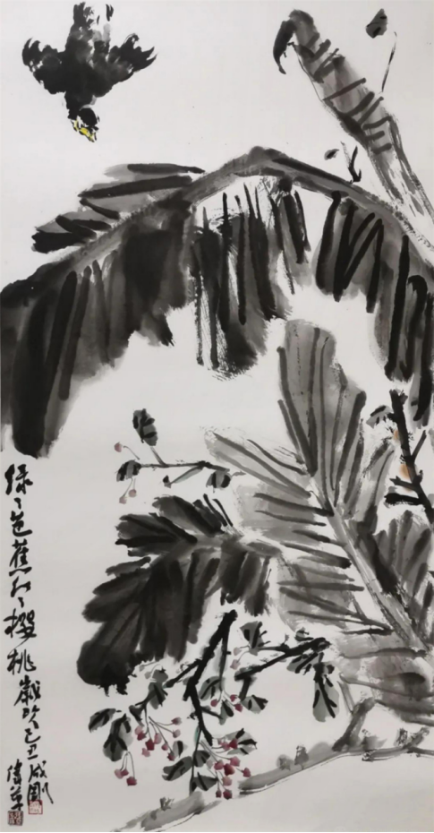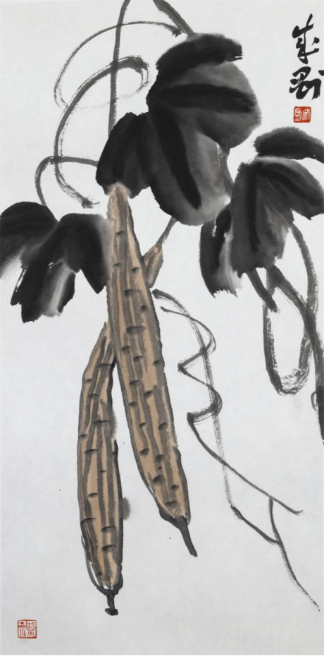 中国画的表现语言是程式化的,有一定的规范,要跨进中国画创造的门槛必须老老实实地学习和掌握这些基本规范,这不仅需要耐心、勤奋,还需要提高传统文化艺术的修养,特别是文史知识的储备和书法的训练。他正是这样做的,他努力涉猎画史画论,并在长期的书法练习中,对中国画的章法、笔墨造型与书法的关系有所认识、有所领会。读孙成刚的作品,可以看到他有较为扎实的笔墨造型基本功,他的绘画语言都有一定的出处,从齐白石、潘天寿、李苦禅,直追吴昌硕,他认真研究他们的作品并从中吸收营养。孙成刚的作品之所以有纯正的艺术格调,就是因为他从传统的规范出发,有较高的艺术起点,避免了中国画创作中最忌讳也最容易染上的世俗气、浮躁气和霸气。他同时懂得,从事中国画创作的画家除了要遵从传统规范外,还必须要有个性的表达方式。