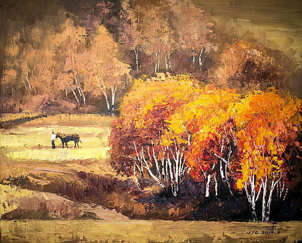 在万紫千红春满园的当代中国美术界,油画家、国画家、装帧设计家灿若星辰,各美其美。而打通油画、国画和装祯设计之间高冷森严的艺术壁垒,集油画家、国画家和装帧设计家于一身的艺术家则寥若晨星。胡金刚先生,中国美术家协会会员,中央国家机关美术家协会理事,农业部书画协会会员,则是中国美术星空中寥若晨星的一颗新星!那么,胡金刚先生是如何修得油画、国画与装帧设计艺术美美与共的呢?