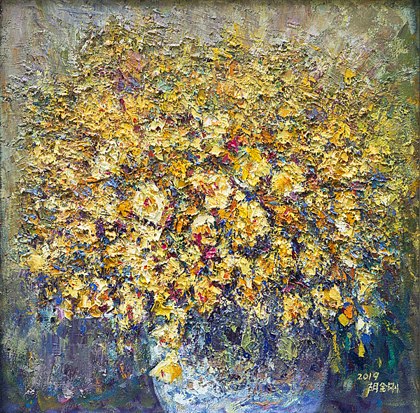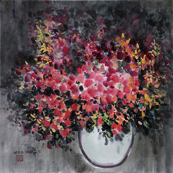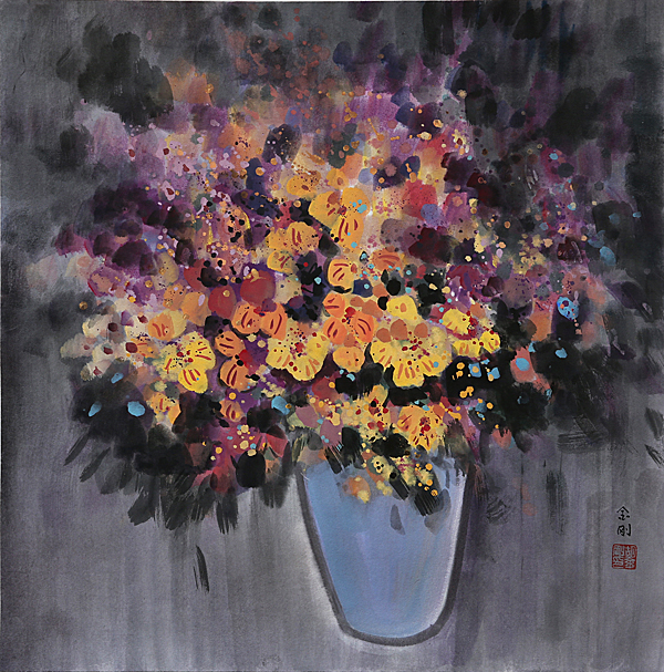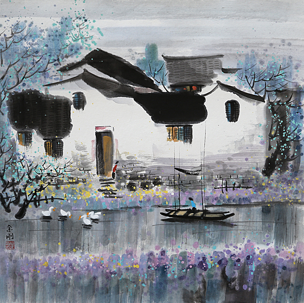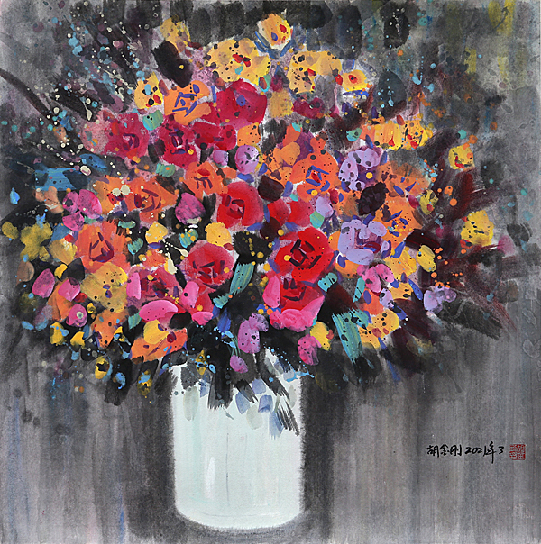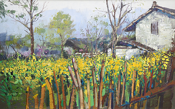 ![]() 《坝上秋色》油画60×80cm 一、喝着“西家的红酒”,让光与影纵情地舞蹈 胡金刚先生2003年毕业于首都师范大学美术学院油画系,师从刘孔喜教授与段正渠教授,可以说是油画科班出身了。数十年来,胡金刚是法国印象派最忠实的拥趸,以19世纪60年代法国印象派大师莫奈、马奈、德加、塞尚、雷诺阿为艺术膜拜的偶像,以“一切色彩都产生于光与影的舞蹈”为美学追求,在油画世界里静悄悄地开垦着一片自己的处女地!捧读四川美术出版社版的《当代名家胡金刚》,我发现他油画的主题像法国印象派一样,专注于自然界的花花草草与现实生活中的男男女女,特别是中国历史文明遗存下的众多老宅、古街与九曲回肠雾蒙蒙的水乡。 ![]() 《水乡油画》50×60cm 他在艺术表现方式上,调和赤、橙、黄、绿、青、蓝、紫七色光谱中的色彩,捕捉大自然中瞬间光与影的辩证关系与明暗效果,描绘出他本人对自然物象的个性化的主观印象。他在油画创作中多用画刀雕琢色彩,其代表作无论是《干花系列》(残荷、鸡冠花、月季、满天星、野菊花、丁香花)、《鲜花系列》(白玫瑰、三角梅、牡丹),还是《庭院系列》(红花满园、缤纷庭院、庭院深深)、《古宅系列》(龙山里耶、皖南西递、婺源老街、青田古屋)和《水乡系列》(凤凰古城、丽江古城、江南小巷、南寻古桥),都有一种斑驳的浮雕感与三维的立体感。 ![]() 《油菜花开》油画60×90cm 从自然之光、外光派到心灵之光,从小小画室走到万物生命绽放的野外,开放的构图、光与影的舞蹈,神与思的交合,胡金刚从印象派经典《印象日出》、《睡莲系列》、《红帆船》、《咖啡厅演唱会》和《煎饼磨坊的舞会》中不懈地汲取着有益于自身学养的营养,用吴冠中先生的话说就是“喝着西家的红酒”,一步一步成熟着自己的油画风格! ![]() 《瓶花》油画40×50cm 纵览胡金刚的油画《人物系列》,则沐浴着各民族人性的光辉。《母亲》以湖南凤凰麻栗坡村一个93岁高龄的苗族老母亲为模特,青色的包头巾,纵横额头的皱纹,饱经风霜的粗糙的老手,让我想到罗中立的不朽之作《父亲》。同类题材《守望》、《盼》、《祖孙俩》和《高原母亲》,让观者从藏族、苗族生身母亲想到饱经历史风雨的祖国母亲,民族团结,大爱无疆,藏族、苗族老母亲跳跃着光影的脸上,不正写满了中华大地五千年文明的沧桑吗? ![]() 《金花满瓶》油画60×60cm 二、吃着“东家的米饭”,让不似之似美在眼前 胡金刚不是“央美体系”的拥趸,也不是“国美体系”的传承人,严格意义上说,他出身于“鲁美”。他的国画大多源于生活“这一本永远读不完的大书”。他曾短期内拜百花会创始人之一黄云先生为师,黄云先生又是李苦禅的入室弟子,李苦禅又得齐白石大师的真传,从师承上算下来,胡金刚应是齐白石的第四代艺徒了。吃“东家的米饭”(吴冠中语),就是入齐老先生的大匠之门,就需要把齐老爷子有关中国大写意花鸟画传统的美学宣言“不似之似”贯彻得体无完肤!胡金刚在农业部下属的中国农业出版社任装帧设计中心主任,中国美丽乡村艺术苑常务副会长兼秘书长,美术编审,有许多机会深入到960万平方公里的“美丽乡村”,接触皇天厚土上的芸芸众生,情系沃土,意语乡韵,写意大美乡村。 ![]() 《睡莲》68×68cm 他笔下大写意花鸟的“大吉图系列”,大公鸡雄纠纠,气昂昂,公鸡母鸡夫妻琴瑟合鸣,公鸡、母鸡、小鸡仔则家庭和美;“大喜图系列”,梅花枝头喜鹊闹,松石高耸苍鹰雄。他的松鹰图,我能看出苦老的笔墨,而石榴与牵牛花,则可感到白石老人的气韵。俄国美学家车尔尼雪夫斯基说:美源于生活,又高于生活!胡金刚深情地爱着这片神奇的土地,他笔下的花鸟画“似”这片土地上的花鸟虫鱼,又“不似”这片土地上的花鸟虫鱼,写形,似;写意,不似;写神,不似之似!但水晕墨章,墨气淋漓,美在眼前,又美在性灵! ![]() 《鲜花》68×68cm 三、大道至简,在书装界自建一道风景线 1988年,胡金刚本科毕业于鲁迅美术学院装潢系,就职于中国农业出版社,从此与农业、农村、农民结下了不解之缘。“美丽乡村快乐行”,注定成为他一生苦追的事业。图书装帧设计,自然成为他半生乐此不疲的职业。他曾任《光辉历程——纪念中国农村改革三十年》大型展览的总体设计,他设计的《农业和农村节能减排十大技术手册》画册和《中国美丽乡村快乐行》摄影展览获第二届中国科普作家协会优秀科普作品奖。特别值得大书一笔的是,他总体设计并插图的《沼气用户手册》(汉、藏文版)发行200万册,荣获国家科技进步二等奖。 ![]() 《瓶花系列之一》68×68cm 作为曾经的同窗——新闻出版总署中央国家机关出版社第十六期编辑室主任培训班同学,我曾问他三十年做书装的经验,他微笑着说:“要放得下艺术家的身段,让农民朋友买得起,读得懂,用得上。”大道至简,见素抱朴,无不洋溢着浓得化不开的“修、齐、治、平”的家国情怀!走下高冷的艺术象牙之塔,学为亿万农民朋友所识、所用,最终得到国家的认可与荣誉,那是多么不易、多么荣耀的人生! ![]() 《瓶花系列之二》68×68cm 漫漫艺术苦旅中,胡金刚油画浪漫、精美;国画写意、传神;装帧设计实用、大气,可以说是各美其美,美美与共!百尺竿头,希望胡金刚兄早日入大匠之门,把国人稀缺的工匠精神进行到底! (作者系国家民委领军人才,文化部