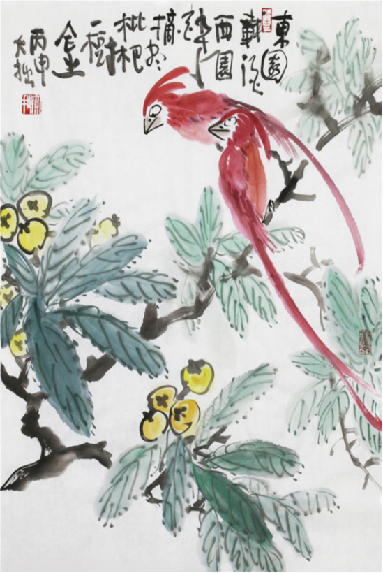 2007年,是我再次见到他的画——很多花鸟画,这次的惊讶,是他的自创作品,不只是多,而且好,有自已的风格和面貌。时至今日又近十年了,这十年来我和大拙接触交流多了,对他的作品更加喜欢和理解了,大拙花鸟,朴拙纯真、生动祥和、自成一路;大拙花鸟,有传统之气,文人之韵,文人风骨。是今天花鸟画界为数不多的让你喜欢,记得住又忘不了的花鸟画家。说他画的好,不是恭维,也不是吹捧,只要你用心去对比古今和当代花鸟画坛的花鸟画作品,就会认可这个定论。