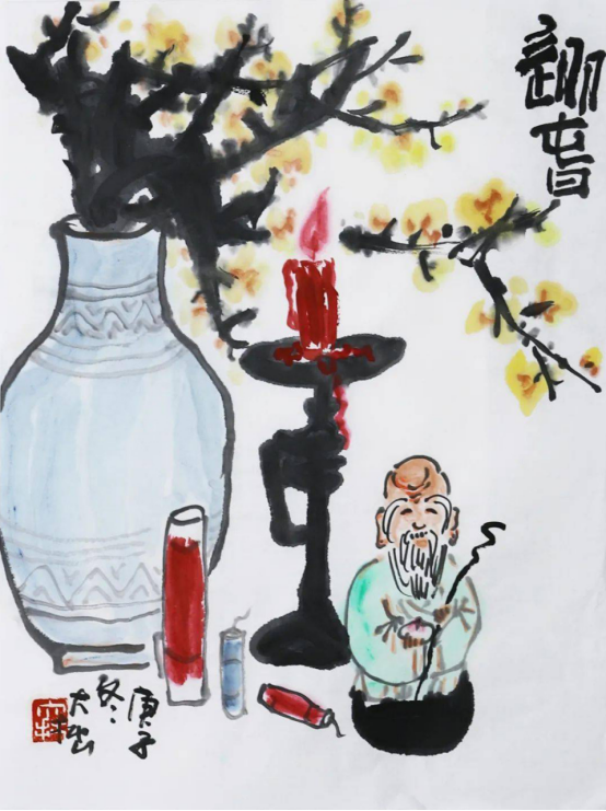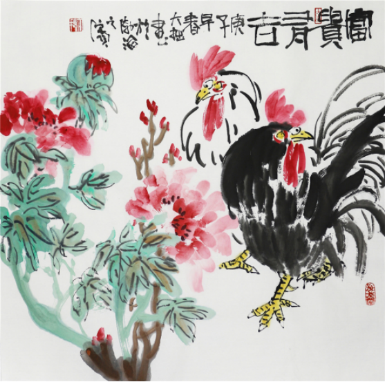 中国画发展到了今天,和古代对于绘画的认识和理解已经有了很大的不同,这不仅是材料上的变化,还是精神层面上的变化。这些在大拙的花鸟里也有了新的体现,虽然是古人常画的题材,但他在构图上、色彩上,抑或是题字上有了新的变化和样式,当然体现出的精神也是一个现代文化人的所思所想,他的这种面貌也不同于“新文人画”近似于调侃的风格,更像是一种生活在新时代的人对古代农耕文化的回想和留恋。 张大拙先生无疑是一位智者,他用深厚的文化积淀描绘出美好的画面,并得到了人们的共鸣。我们虽然生活在高楼大厦的钢铁丛林中,却留恋着乡间农舍的瓜秧农舍、闲花野鸟。这是一种文化情怀,需要抒发灵性,发散思想,在人群之中找到共鸣。