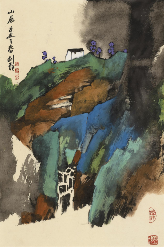 进入二十一世纪后,创作优秀的文化艺术作品,是每一个艺术家的文化思考。以内在的情感,生命的灵性与技艺融为一体,“写意重彩山水”看似简单,但创作起来是非常有难度的课题。笔墨的技艺与色彩结合,在中国画领域差不多有些水火不相容,要融合的恰到好处可以说没有一定成熟表现方式方法,绘画整体性是很难控制的。武剑飞的写意重彩山水从传统中来,又不同于传统,属于另辟蹊径的开创者。