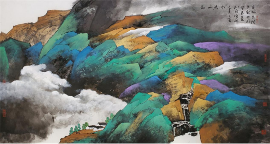 无论是具象或者抽象艺术,其内涵一定是发自艺术家本体的原发形态构思,内心的体验和来源于生活高于生活并以自由释放为目的,久而久之形成自己的艺术风格。武剑飞的写意重彩艺术就是以“表现主义”一种面对自然,面对生活的博大胸怀,发现与展现中华大美河山的精神气概,表现雄浑壮丽,以线面结合,色墨结合的绘画截体布局为祖国山河立传。