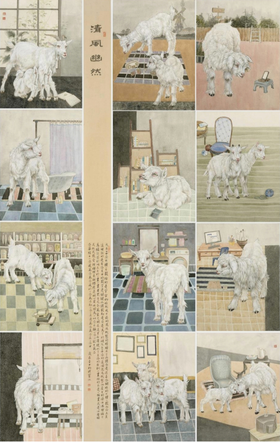 程宝江老师寄情自然,不拘一格实力画家,把心尘于自然,在自然中去寻找灵感,表现出一种静谧舒适的氛围。他的作品清新典雅,笔触生动,把动物和花鸟都细致入微的刻画,特别是他的羊,有自己独特的表现方法,他的每一幅作品都精心设计,点、线、面,黑、白、灰把控的恰到好处朴实无华、规规矩矩的呈现方式让我们体会到画家内心的平和,从而使画面呈现出一种宁静祥和的画面氛围。