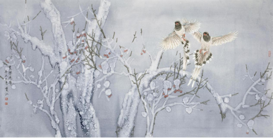 程宝江先生立足传统,锐意创新,工笔画细腻唯美,生动传神。他的吉祥羊系列作品,以细腻的笔触,精工线描,层层渲染,以富有时尚感的刘海造型,创新三羊开泰,祥瑞和谐的新时代画风。 他的花鸟系列作品,善于以冰雪做背景,来体现鸟雀的生动与活力,在色彩的对比中,冰清玉洁之中幻化出粲然夺目的鸟之魂,体现书画家高洁,孤傲的内心世界。 ——《中国书画家报》副主编孙秀明