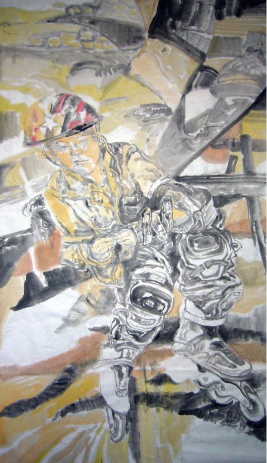 作为美术学院的学术中坚,可刚义无反顾地投入到这种改革的大潮中,不同的是,他将“实验水墨”改名为“水墨实验”,意在增加它的实践意义。 于是,思考和实践成了可刚并行不悖的即时状态,比如对“实验水墨”存在的价值与发展的可能的探讨,比如对“实验水墨”的包容性和全国美术界参与性的论证,比如对艺术家如何对待多样化和多元化的探讨,比如如何确立新的水墨画评价标准等,特别是新时代美术的拓展和转型问题,使他深感历史的责任之重。 其实可刚的“水墨实验”是有很深奥的理论基础的,我这里只是以蠡测海般地简略述说一下,而真正关注的是他的“实验产品”即作品,可称之为王可刚的现代水墨作品。