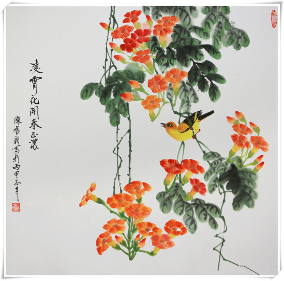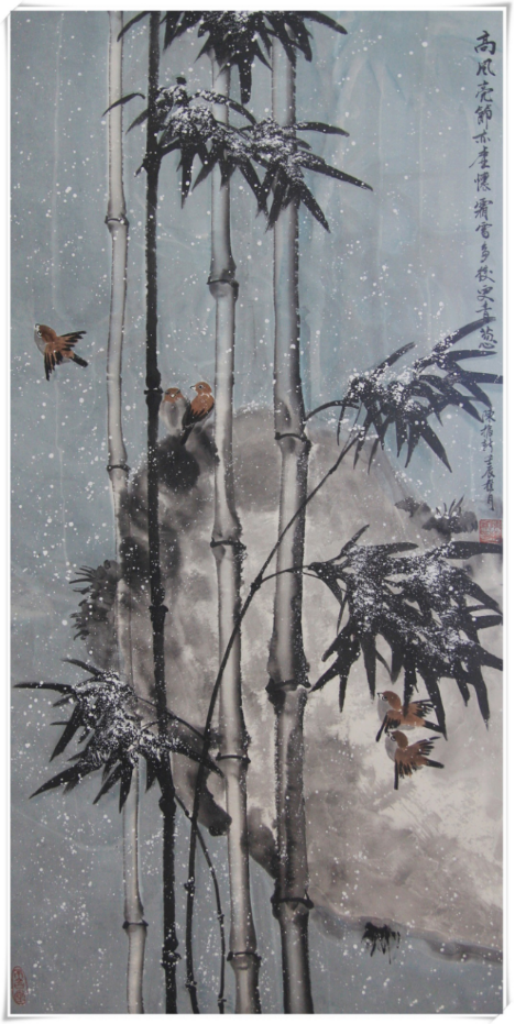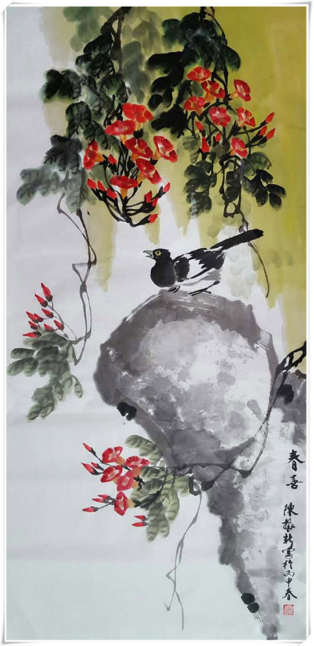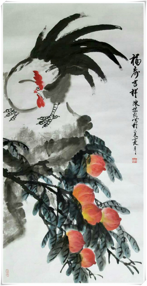 振新先生已年逾七旬,仍旧每日笔耕不息,新境新意层出不穷。振新先生穷毕生心血,存齐派精髓于笔墨,一情一怀均赋予丹青,于齐派艺术,于中国山水花鸟画,于我辈有幸欣赏其大作者,功莫大焉,善莫大焉! 观赏陈振新先生的作品,不由情禁地感悟着一种在自然生机;墨竹挺拔,花儿灿漫,雄鸡高歌,鱼翔浅底;雀儿在天空中展翅,家禽在树荫下寻觅……。其作品以凝练灵动的笔墨,描述出博大精深的内涵,凸现了他对生活深入的观察和对事物本质的深刻的把握。个性鲜明、大胆创新、用笔简洁流畅、章法考究、意蕴深远依永。无论是谋篇造势还是笔墨渲染,都显示出其娴熟的艺术功力,创造性地实现了艺术境界与表达手法、历史人文与现实空间的和谐统一,体现了激情与灵感的自然流露,从多种角度折射出其馨香的品德和高洁的志向,达到了形神相通雅俗共赏、意高趣浓的境界,给人以极大的艺术享受。