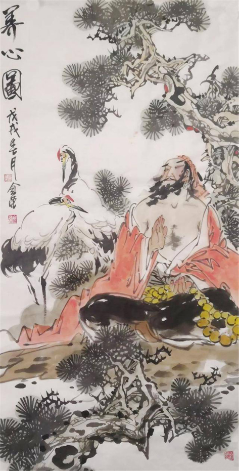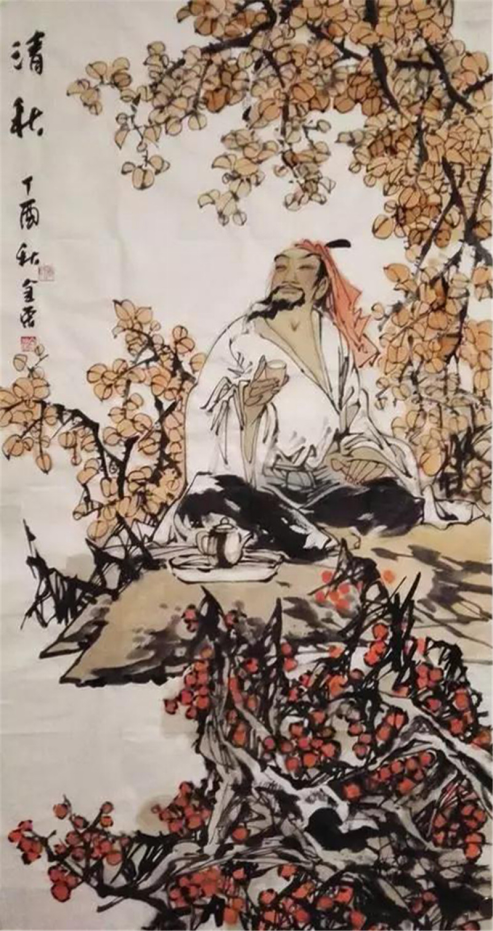 根据国画收藏专家的介绍,张金荣的版画、年画等作品被中国美术馆收藏,还有数十件国画被国外人士收藏。自学成才的张金荣在创作的写意人物画中,就将人物画中的造型和笔墨两个难点很好地融合。在画作《醉月图》和《养心图》中,古代先贤的不同形态都在创作者出色的功底下形象地展现出来。 在《醉月图》中,古人喝醉时的神态在明月当空的夜晚下多了一份惬意,画中人物细腻而又微妙的面部表情和周边夜景的陪衬都将一种醉人的形态给艺术地展现。 在另一幅写意人物画《养心图》中,一幅画中人物修身养性的神态在身边书简、周围静谧的景象衬托下让其多了一份美感。