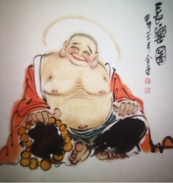 张金荣的水墨人物画大多取法后者,多年来他潜心研究人物画的衣纹样式,一点一画、一拖一摆均在力求凸显线条的美感,为充分发挥书写用笔的特性铺出水墨平台。他塑造人物的线条感强烈,即体现了准确的人体结构和夸张有度的动态,又具备书法艺术的一张一弛节律,合乎章法和浪漫气韵。赏读其画便有轻松自如、清丽俊逸之感。金荣水墨人物画线条呈现出的艺术魅力,主要得益于他早年创作连环画用笔勾线的造型基础和疏密有致的巧思。张金荣水墨人物画用墨用色也很到位。墨色浓淡相宜,既有淡淡的阴柔墨韵,又有浓重的阳刚墨块。