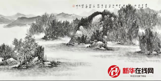 刘松江画室的名字叫无壁堂,既然是堂,为什么没有壁呢?用他自己的话说,艺术无止境,无壁堂就是要博采众长,不局限于某家某派。既然是无壁,画家就要有一个宽阔的胸怀,要以自然为师,吸取天地之灵气涵养自己,否则定会受限制。近几年,版画起家的刘松江,又攻研中国山水画。画山水在家里是无法画出来的,所以她的这个无壁堂就是大自然了,名山大川就是他的画室。在他的无壁堂里,松江给我讲了许多他搜尽其峰打草稿,上山下沟写生的有趣经历。