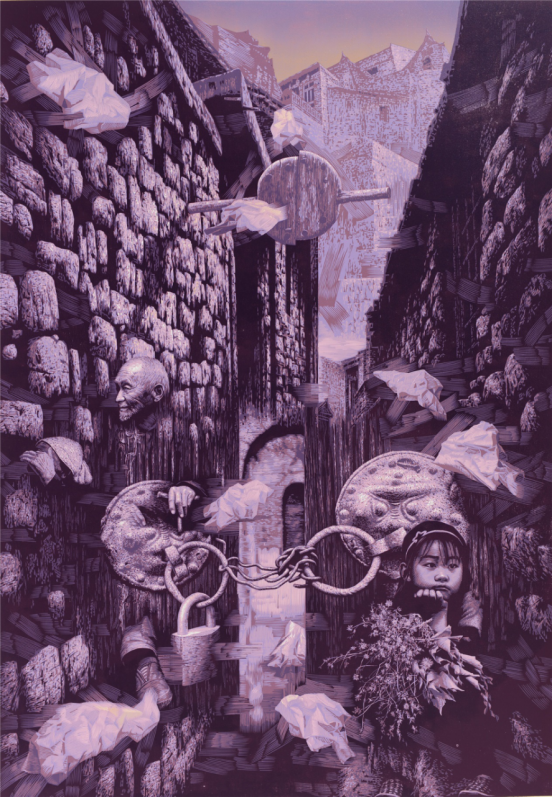 《时间之锁》128×88cm 减版木刻 2016年