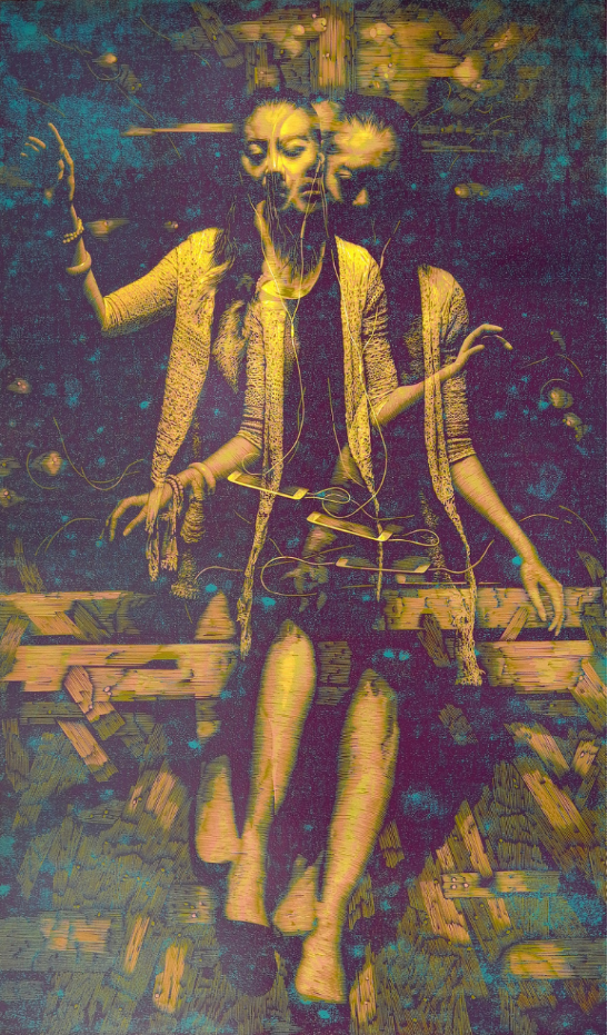 《时间之五》112×66cm 绝版木刻 2015年