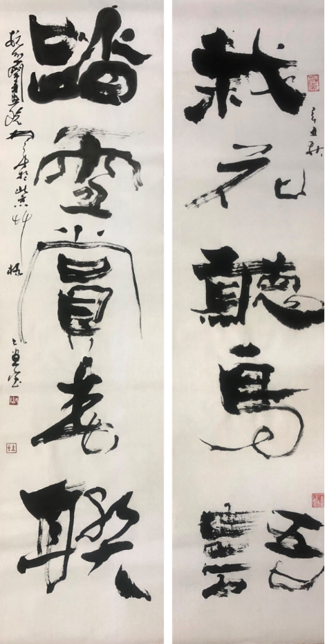 真力弥漫 功性互见 ——再述林立中先生的书法艺术 我们更加准确地找到其书艺所呈现的涉猎广度、承袭深度、技术高度和情感浓度的根源,提供了极大便利。林立中 正是因为民族文化的熏陶和西方文化的濡染,并在两者的合力作为下,才能摒弃了师承所带来的负累,才能抵制住因酒神附体所形成的形式纠结,才能消解掉中西方文化冲突所引发的无奈,才能玉成其对人文精神所具有的开放心态。深入到篆、隶、行、草的各个方面,甚至于现当代书家的创作;这种心态使其在情感表现上不再拘泥于温文尔雅一方,而是高扬起与时俱进的恢弘气概,体现了“以写我心”的时代精神;这种心态使其风格上不再迷恋于面目单一的独处,而是在雄浑、洒脱与超诣的诸多方向上,实现着日新月异的个性张扬。总而言之,这种心态综合地体现为林立中先生“真力弥满,功性互见”的主体意识,使其在书法创作中得鱼忘筌形神兼备,“此中有真意,欲辨已忘言”。