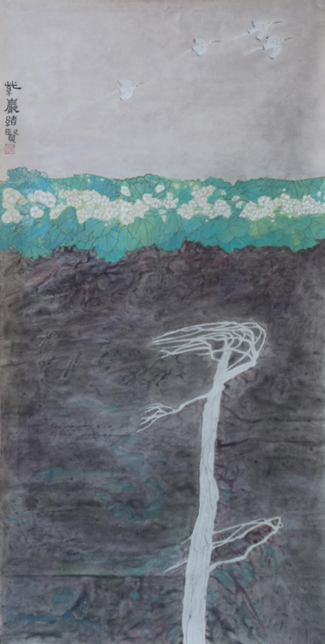 何绪贤经过长期的绘画实践和创作,形成了其鲜明个人风格、行之有效的绘画理论和创作方法,也显示出其在国画领域中独到的艺术见解,中国画的创新思路就是要发掘、发现当代精神,意与古会,推陈出新。当代中国画艺术一边汲取古老的理论养分,一边随着时代的发展,滋生出更多新的艺术元素,在当今世界全球化发展的大背景下生机勃发,熠熠生辉。 编者按