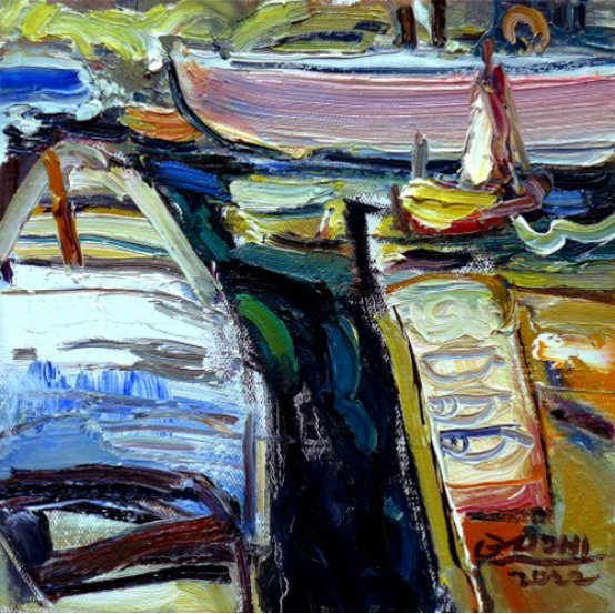 作品磅礴大气中不失细腻飘逸,写实写意浑然天成,凸显出扎实的美术功力和超凡脱俗的艺术想象力和表现力,于细微处见精巧,于厚重中见灵动。 曲直曾经在东海之滨创作了“渔人码头”系列作品,如今远赴海南奉献出“南海潮头”系列画作,笔触更加圆融,色彩更加端丽——椰岛风情、渔船、热带鲜果、贝类海鱼等静物,都被他赋予了鲜活的艺术生命,正如郑板桥画作题诗:“一枝一叶总关情”。曲直的“南海潮头”系列,契合了当今世界油画创作重神韵重表现的潮流,折射出曲直创作风格成熟升华的一个重要节点。 俯仰天地,屹立潮头。