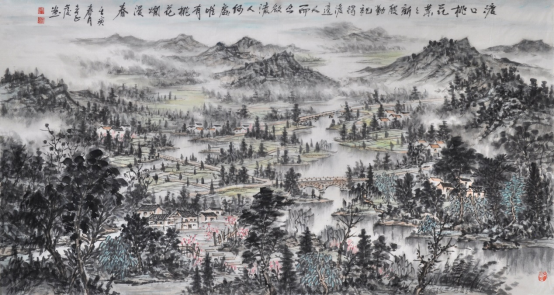 《山含嫩绿水拖蓝桃李阴阴如欲酣》180×90cm 2022年