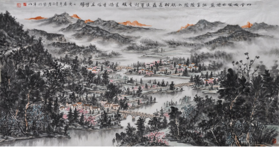 山水画衍生的物质基础是以农业生产为根基的农业文明,这一文明的主要文化特征是安土重迁的乡土情蕴和家园情结。祖辈们耕耘播撒、辛勤劳作、无荒无嬉,在与天地万物的迎送往来中身心得到来归依与安顿。其眷恋的不是金戈铁马的扩张与冒险,也不是一味追求名利与富贵的世俗群落,而是和平安适的田园生活,醉心于浓情馨意的家园诗意。由此而论山水画旨在表达人文意义上的家国情怀,它不同于西方的风景画,也不同于摄影术。山水画又是艺术家最为朴素的描绘家国胜景的一种表现方式,它不仅饱含着艺术家强烈的思乡爱国的情感,同时承载着人类永恒的精神诉求。