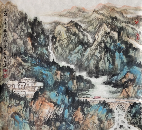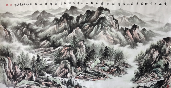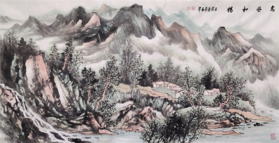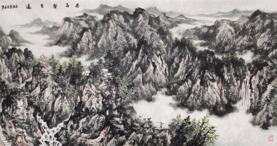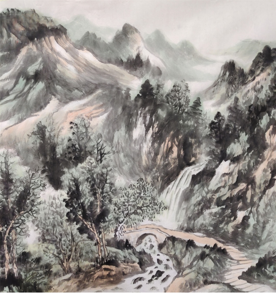多年来,他在致力于山水画的研习与创作中,始终坚持以传统为根,以生活为源,潜心深悟传统之真谛,苦心探求出新之路径,集传统山水画之大成,融现代水墨画之精髓,与传统一脉相承又别开生面,在传统的大树上,展现个性的风采,将气韵、神韵、墨韵贯于其中。