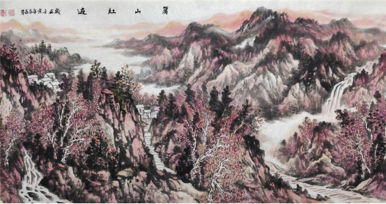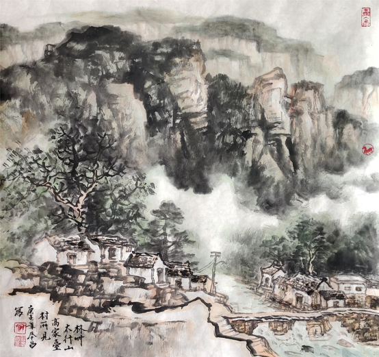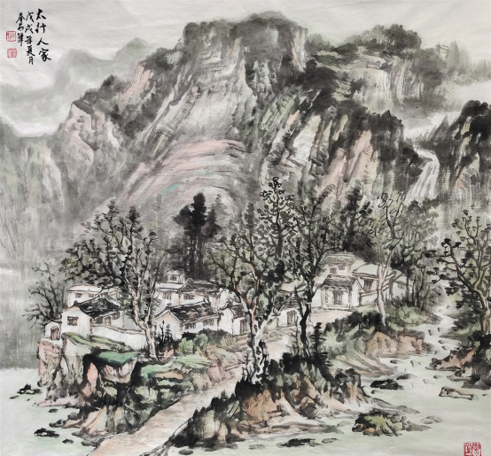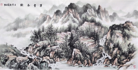 浑然大气、粗犷健朗的感觉,细一品,让人感到构图精巧、笔墨精到、创作精心。他对山水画本质的准确把握,笔墨的娴熟运用,线条的自如勾勒,意境的独到创设,可谓独辟蹊径,独树一帜。