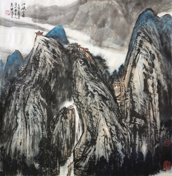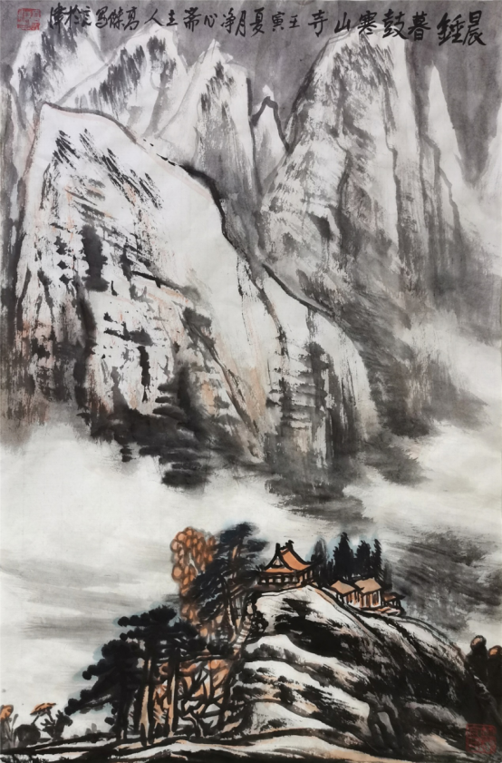 皴法多样,神韵贯通是高杰先生山水画技法的突出特色。中国山水画有着两千多年的文化传承,画山水讲究皴法,皴法不娴熟画不出大山的气势和神韵。高杰先生在文化上继承了先人优秀传统的基因,凭着自己的勤奋和悟性,闯出了自己绘画技法的新天地。高杰先生的山水画皴法很难明确的归为哪一类。