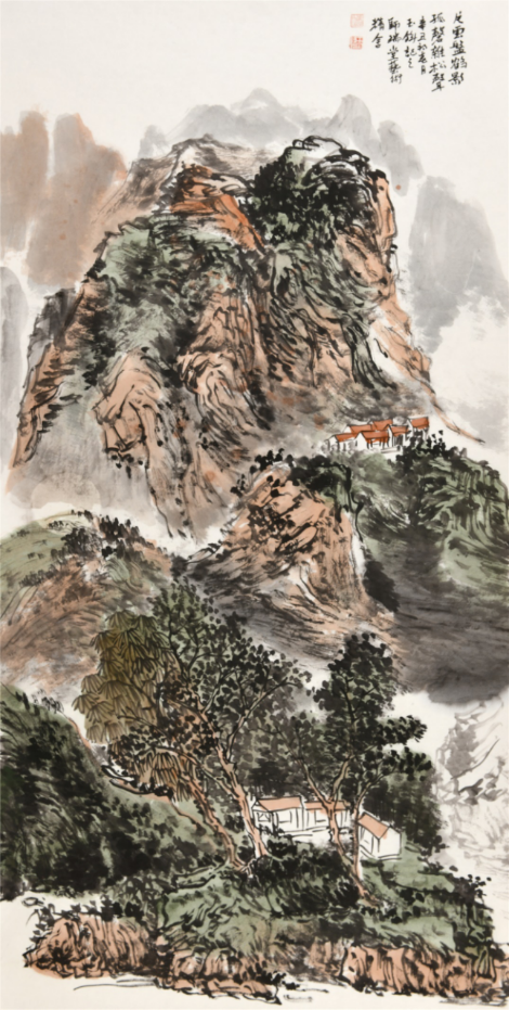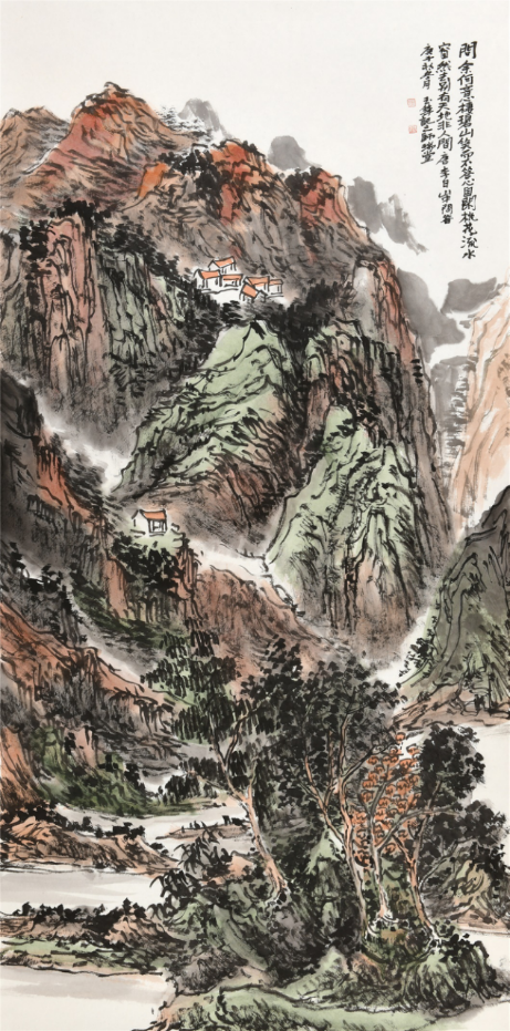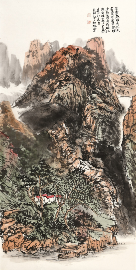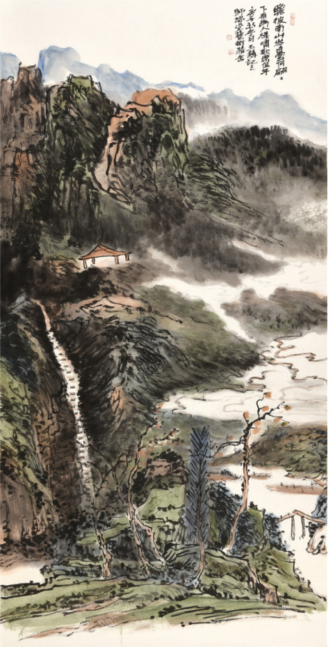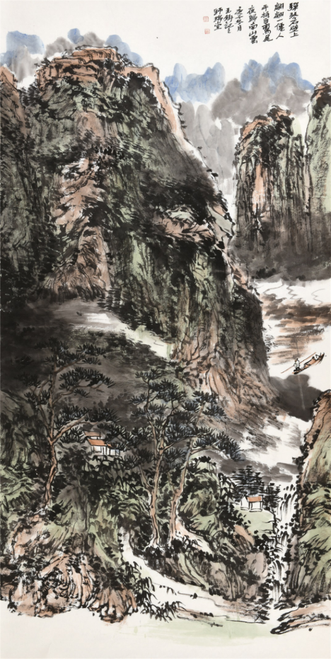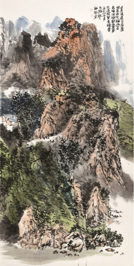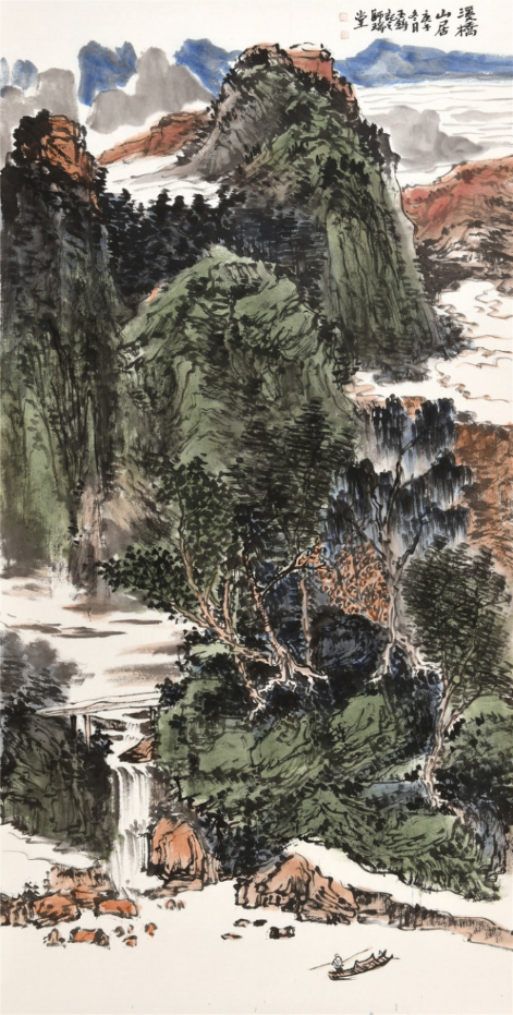 他的作品营造了形神兼备、气韵生动的艺术境界与品格,山势巍然、流水潺潺、云烟浮动、深邃幽远,画而漾溢着氤氲之气;这些作品构图平实,甚少奇峭之状,而多平常之景,其实,这恰恰折射出画家自身的精神需求与审美取向。