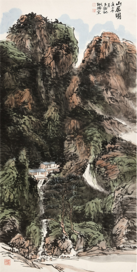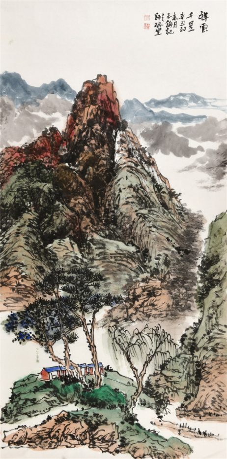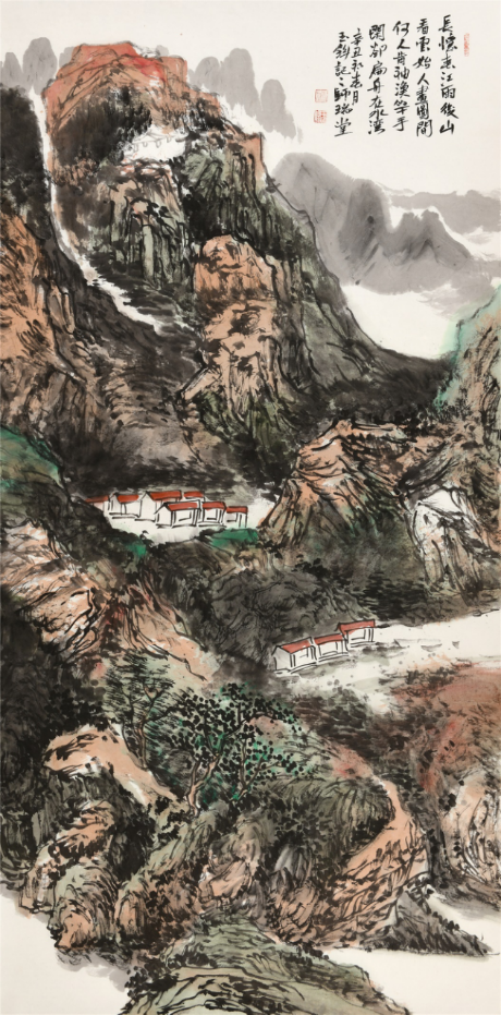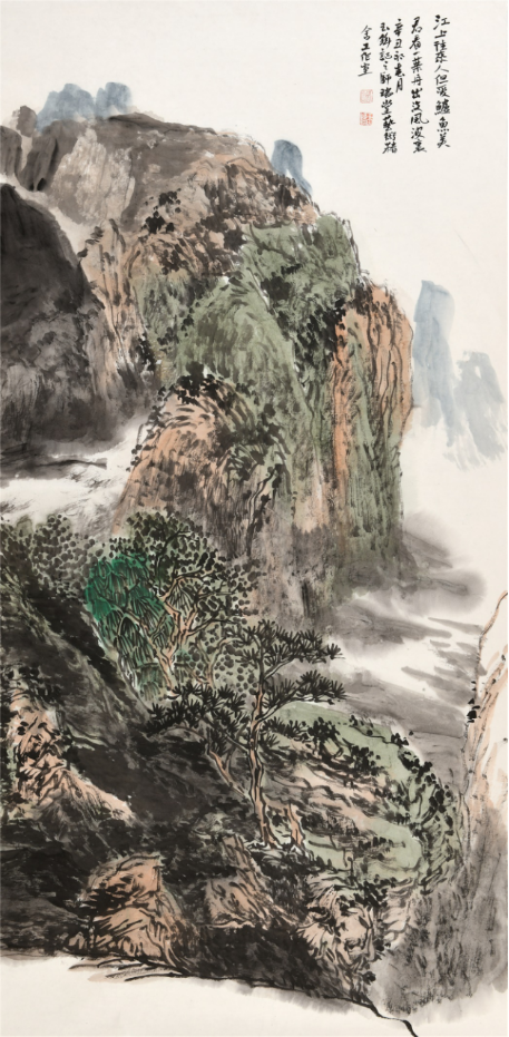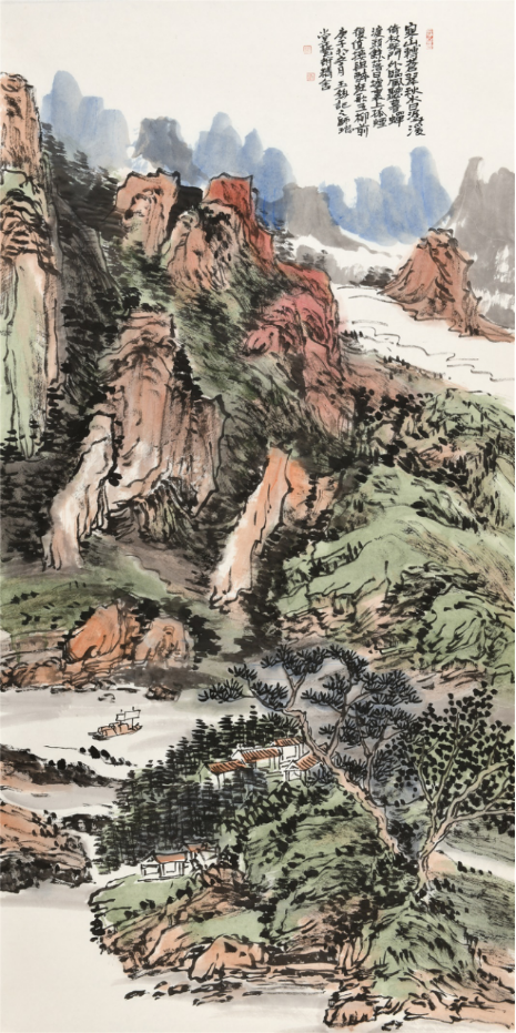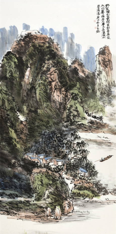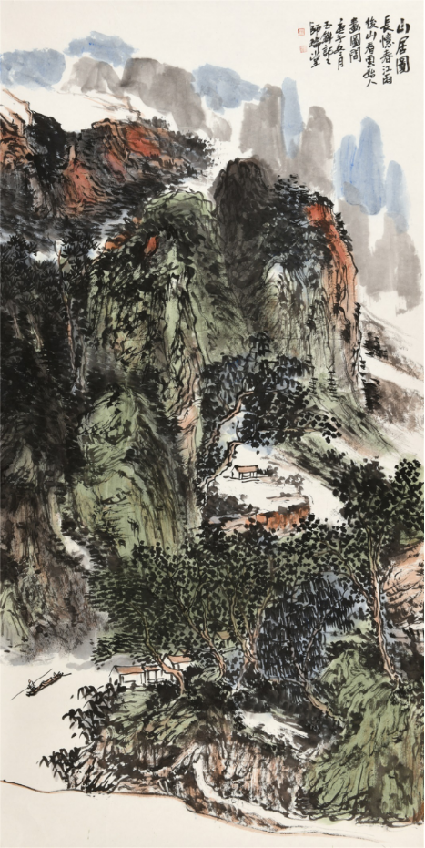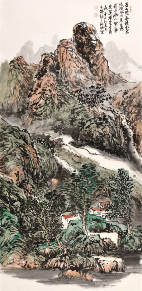 他的作品营造了形神兼备、气韵生动的艺术境界与品格,山势巍然、流水潺潺、云烟浮动、深邃幽远,画而漾溢着氤氲之气;这些作品构图平实,甚少奇峭之状,而多平常之景,其实,这恰恰折射出画家自身的精神需求与审美取向。