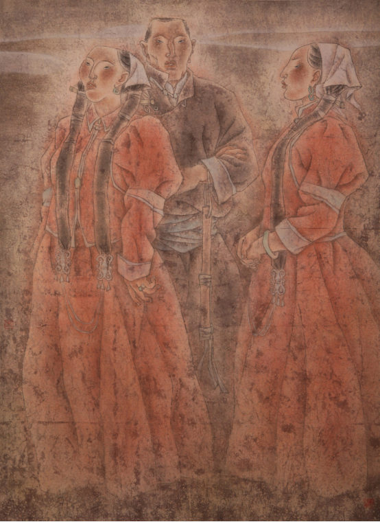 内蒙古草原是中国游牧民族的发祥地,20世纪中国社会的现代文明进程也促使这片辽阔的土地发生了历史性的巨变。现代文明不仅意味着社会制度、生产关系以及建立在这种基础之上的政治、经济、文化对于人的充分尊重与深切关怀;而且意味着不同民族之间的文化融合,已经成为推动人类全球化进程的一种积极的文化能量。艺术中的中国北方草原民族形象,正是在20世纪中……作为70后的蒙古族画家,图力古尔的简约造型,以对结构的深刻理解为基础,并通过结构分析和适度渲染而使得人物形象在极简中获得丰厚的表达。因而他画面上的用线虽简,但因结构深入而不单调和空洞;渲染虽润,却因肌理的剥蚀而感到稳健与坚实。他的《五月长调》和《红色布里亚特》等,由这种语言而显得低沉幽邃。 2013/1《美术》杂志 现代草原民族形象的人文记录 尚辉 |