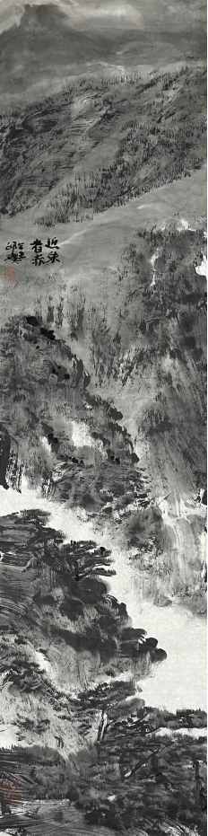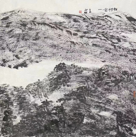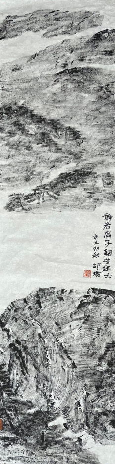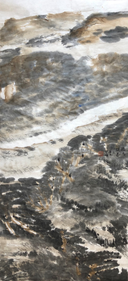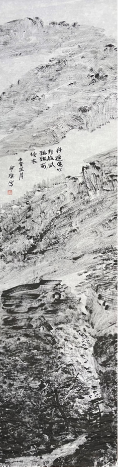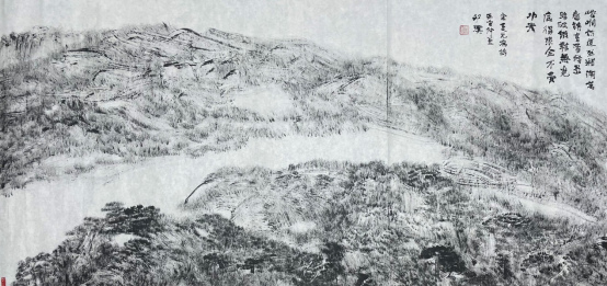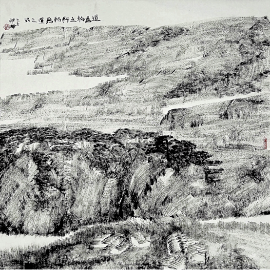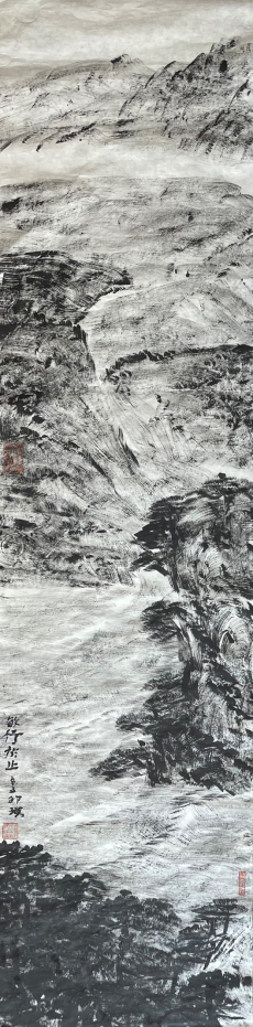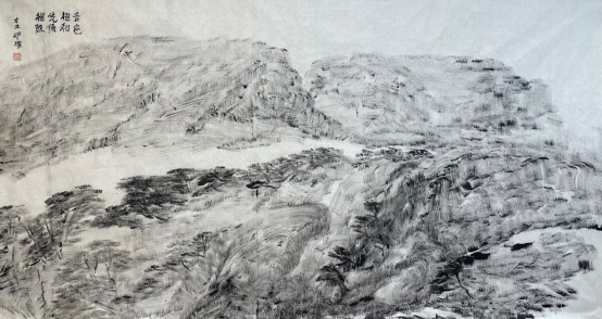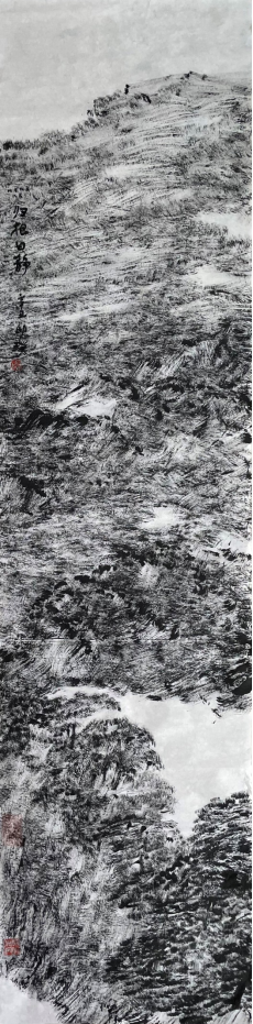 王祥夫:你的焦墨山水是一个新的点,从张仃先生的焦墨写生到你的焦墨山水创作,从客观临写到主观情感的抒发。我觉得这之间像是发生了一件什么事。我们现在不怎么提倡“笔墨当随时代”或者是“用笔墨反映和讴歌时代”这样的话语,但有一点十分重要的是你的焦墨山水明显让我感觉到像是一列火车脱离了轨道,突然开向了自己的原野,我特别喜欢你的焦墨山水也就在这一点上,是心性所为,也是你的热情所在。看了你的焦墨山水我都甚至在想我是不是停顿下来,朝另一个方向推进,但我毫无目标。你从什么时候开始建立了你在这个空间中新的可塑的功能?