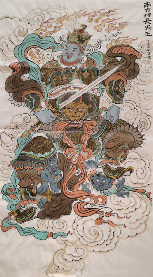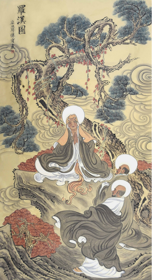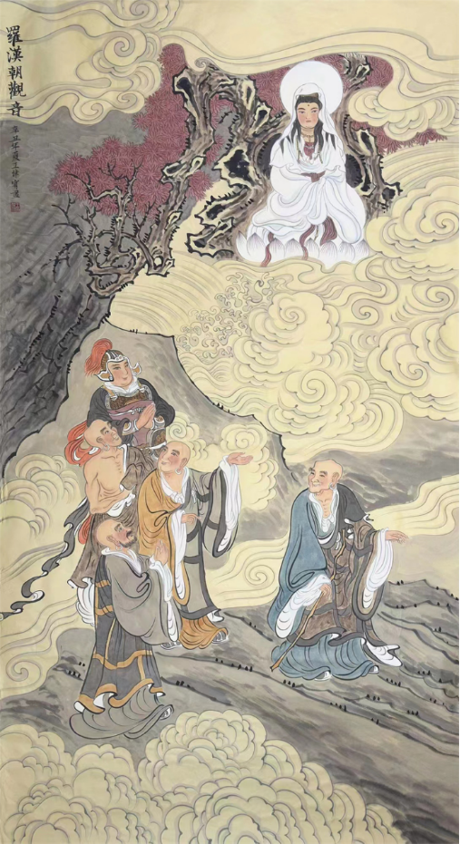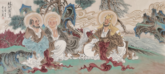 事实上,一谈到道释人物画,可能当前有很多人都会自然升起一种庄重、肃穆、敬畏的感觉,更多会展现出一种对宗教的信仰。但我想,首先作为一件艺术作品,其艺术价值应当是被放在首位的。“一切艺术的真正要素乃在于生命,且丰富其生命。有了生命,时间空间都不能限制它。”观道释人物画,所传达的正是一种情感和精神诉求,直指人的内心深处,与生命对话,这是一种信仰,又何尝不是一种艺术?