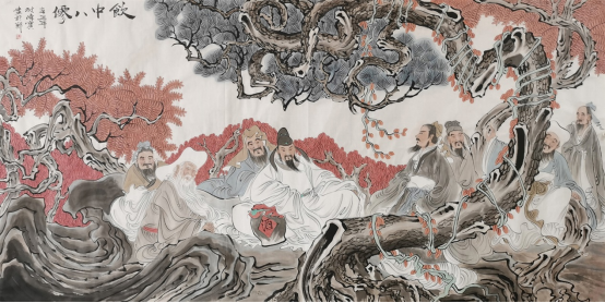 目睹王伟宾的道释人物画,我不由自主地想起来两个词“道法自然”和“明心见性”。“道法自然”出自道家的哲学思想,强调自然而然,返璞归真;而“明心见性”讲的是禅宗悟道之境界,即发现真心和见到真性,回归本心和本性之自然。两者虽源自不同的宗教,但似乎有着内在的一致性,那就是对自然人性的追求。那么,以此来观照王伟宾的道释人物画,可谓巧妙地将两者的主旨展现了出来。