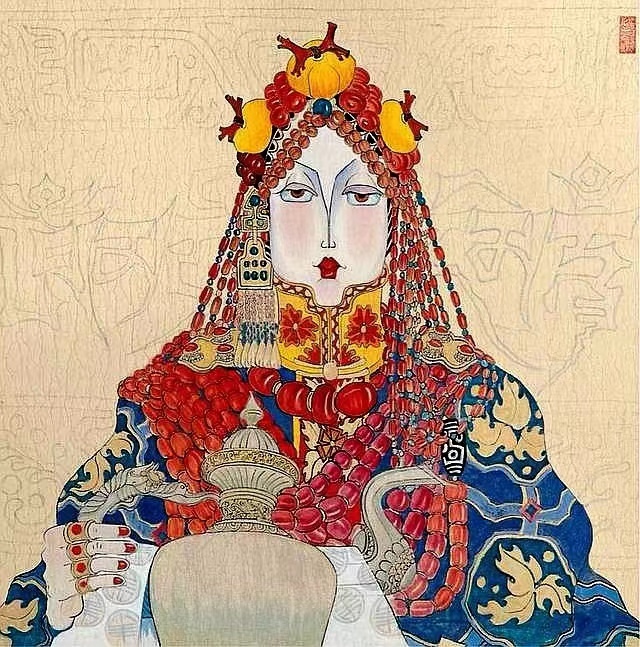 他笔下的美人:妖媚诱惑阿娜多姿活色生仙,个个大胸大臀杨柳细腰摄人心魄勾人眼神,嘟嘟红唇樱桃嘴又充满了性感的诱惑,有着一双绿色眼睛幽幽暗暗慢生情素。应该是释权了男人们心中对女人的想往.暗恋和探讨着女人的神秘、心中所愿的心灵女人形象吧。 格格:此人只应盛唐有,三千宠爱在一身。这个人我不说大家也知道是谁了吧?哈哈哈哈。虽是玩笑,但老师笔下的重彩美人的确实独具特色别具一格。