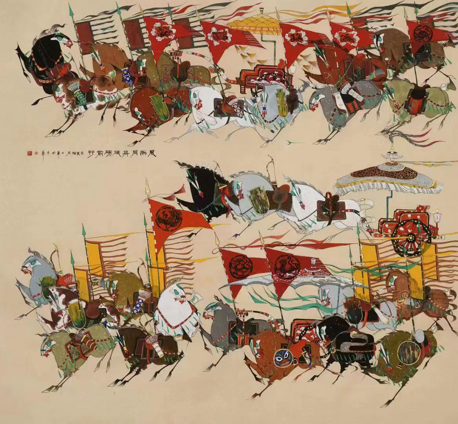 邹老师笔下的马: 自徐悲鸿大师后画马的画家层出不穷。然,邹老师笔下的马以其独特风格在当代画界可以说独树一帜傲视群雄。 他笔下的马铁骨铮铮汉风唐韵,宽阔的胸大肌圆润的美臀汉马唐风一览无余,古战场上或柔情似水极尽羞涩,或春风十里呼啸、或月下饮酒抚琴、或花下柔情低语。邹老师特别注重线条的坚挺力度和结构的细节处理,凸出重彩画家的重彩的效果(个人观点)。他独特的画马风格,我知道前无古人,是否后有来者?格格不敢断言,或许有一天格格也可尝试着画几笔?然,当下的水平无从下手…