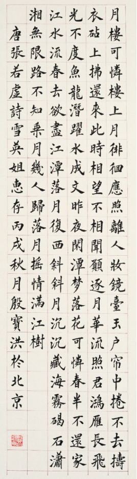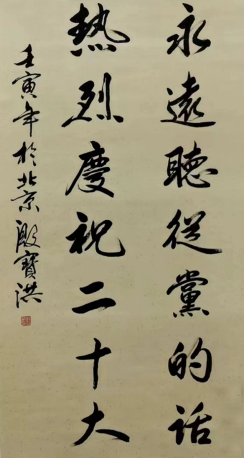 艺术简介 作者自叙:殷宝洪,江苏无锡市人,1943年生,喜传统书法。楷书师从温彦国先生,主要临习《欧阳询九成宫醴泉铭》和赵孟钚。 我在有限的时间里接触的书法,对于中国几千年书法传统而言,只是沧海之一粟。 过去寻常百姓家司空见惯的笔墨书写,如今成了少数人近乎奢侈(因为需要大量的时间)的艺术拥有。 正因为这样,习书离不开思考,离不开选择;任何人只能在有限的时间里,选择有限的目标去努力、去耕耘。但也永远无法穷尽中国书法宝库的珍宝。取法乎上、少走弯路,也许就是习能所得的要诀。 书法离不开审美取向。我崇尚“中和”之美。不泥桎梏,不求狂放,在“中和”里,体味书家之道。欣赏寓柔于刚,藏秀于雄,正中寓奇,方圆天成的意境。 书法,是汉字与人的气韵的交迸,是内与外的精神贯注,都是必然的修炼。 “学书在法,其妙在人。”本着实事求是,自强不息的精神,长则扬之,短则补之,谬则弃之。 非常感谢中国书法家协会名誉主席沈鹏先生,多年前为我《诸葛亮出师表》长卷题字。 感谢长期教授书法、关注我习书的老师和朋友:糜振玉和温彦国、颜振卿、傅剑等著名书法家。 殷宝洪 2022年9月于北京