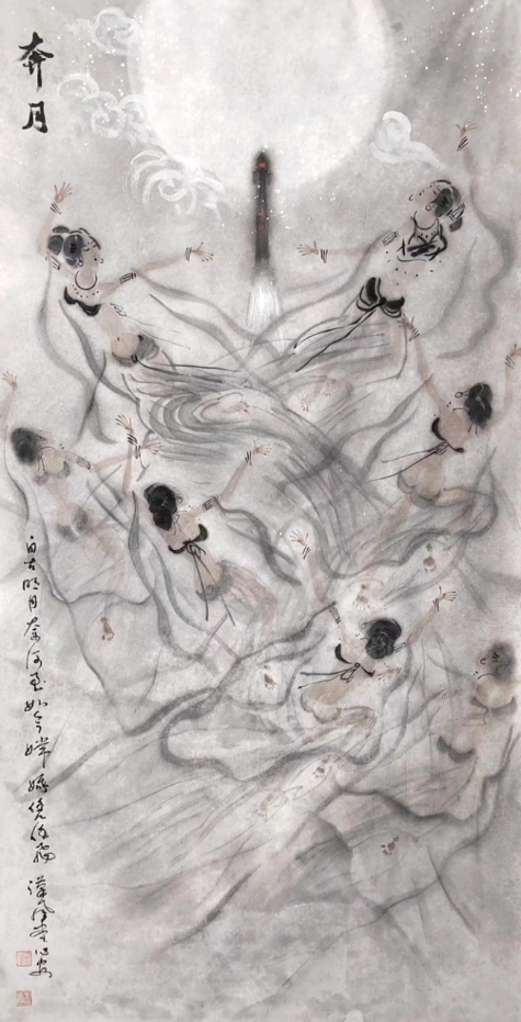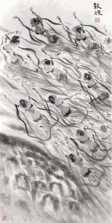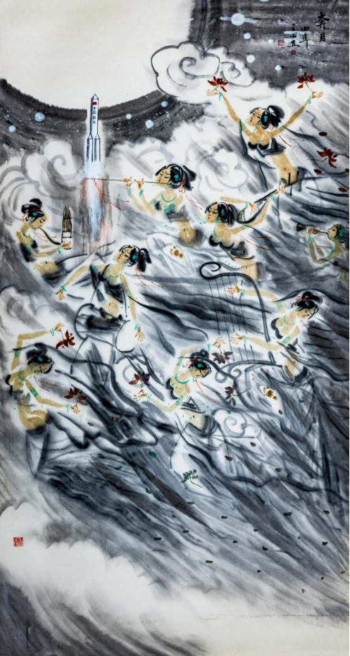 我的《飞天》系列作品,源于一带一路上的莫高窟艺术,我被莫高窟艺术之宏伟所震撼,被飞天艺术之精湛所折服.