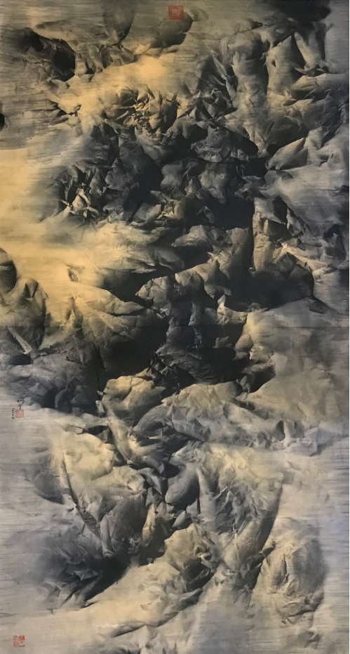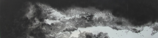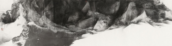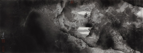 问:画与画的关联以及不同之处 答:我在2013年之前的创作以版画为主,作品偏重于关注当代社会人的生存环境,个人理想与社会现实的矛盾冲突。2013年开始转向水墨,开始也是延续版画创作中的一些思考,比如《乡关系列》作品,以横幅长构图表现我所感受到由于过度开发带来的自然环境的改变,表达是一种当代的精神乡愁。2014年我创作了《山水》系列水墨作品,表现的是被人类过度干预和破坏后的碎片化的山水,完全迥异于传统山水画的审美意趣。因为在我看来,传统山水画中的诗情画意在今天已荡然无存。2015年以后的创作则重新在作品中寻找诗意,表现是心中的理想化与人格化的山水,追求一种荒寒、沉寂、自在无人的山水,更符合自己的美学理想。