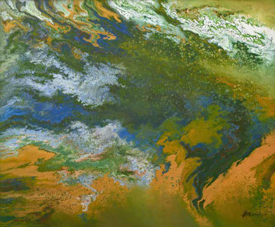 承强的油彩抽象绘画,流彩溢章,浑然奇幻。他的创作有着极大的随意性,自由而多变,驰骋有余,连贯一气,随心所欲而千姿百态,每幅作品所呈现的意境各不相同。观看他的作品,或若风云际会,云卷云舒,广袤、激荡中蕴含淡然的惬意;或若大漠孤烟,长河落日,扑面的雄浑与沧桑;或若星河璀璨,漫天流霞,充满了瑰丽的幻想与浪漫的情怀;或若春雨潇潇,如烟、如雾、如尘,仿佛有诉说不尽的绵绵情思……他的作品跨越了梦幻与现实之间的界限,酣畅恣肆、吞吐大荒,宛如一首首生命的赞歌,让人浮想联翩。