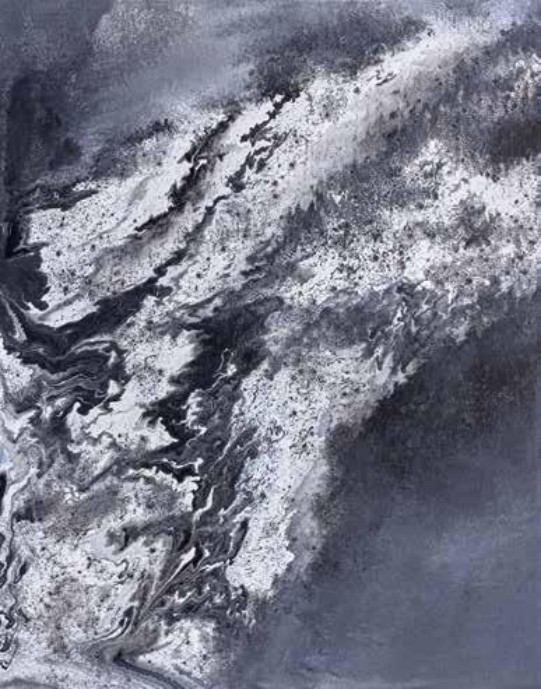 承强的作品妙在具象与抽象之间,属于具象中的抽象,意象中的表现。天马行空的流彩,纵横若入无相之境,不为形所役,淋漓酣畅。但无论其想象多么绮丽与变幻,观者还是可以看到其中所蕴含的意象,在幽隐之际是有物、有象的,或若云雾蒸腾,或若群峰竞秀,或若静水深流……,景物盎然,一片生机。在《飞瀑》《黄山雪霁》中他以大白、大黑的阴阳关系构架画面,黑处繁重密致,层层叠叠,白处轻盈而灵动,黑白之间,氤氲隐约。他以“知白守黑”的理念在黑白互生中展现了一幅山水画卷:山似云,云如水,山、水、云浑然一体,咫尺之中天地难辨颜色,山峦密林,似有似无,若隐若现。承强笔下的物象大都似有又若无,虚无缥缈,“惚兮恍兮,其中有象。恍兮惚兮,其中有物。”他正是在虚实交替、有无互生中创作了脱离物象而又非单纯抽象的艺术形式,在有形的现实世界和无形的精神层面找到契合点,演绎了一幅幅至高、至深、至美的空灵妙境,呈现了中国艺术“大象无形”的审美理想。
