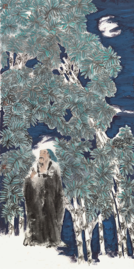 毫无疑问,艺术创造要从实在中升华。经由创作主体生命力的灌注而又扬弃了实在性的一个精神感性的创造物,实在变为艺术语汇,对客体只不过是借题发挥,意象语言魅力愈浓,实在性便愈要冲淡,唯有精神的超载和精神的升华,才能使自我本真进入艺术境界,去接近永恒、无限和自由天国,这时“物我两忘”,无一不是造化之所为,无一不是本体生命之广延,“有生命力的形式”便会如潮水般向你涌现。