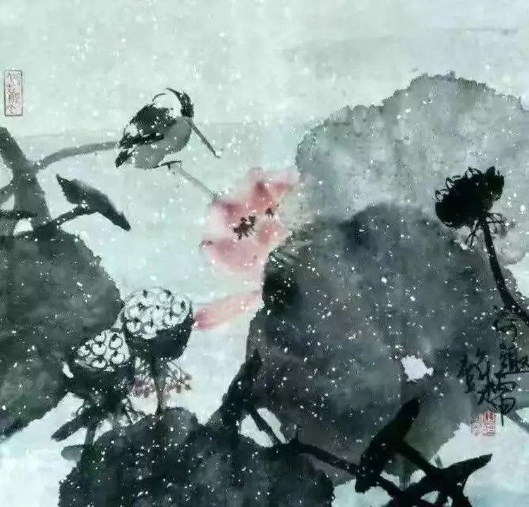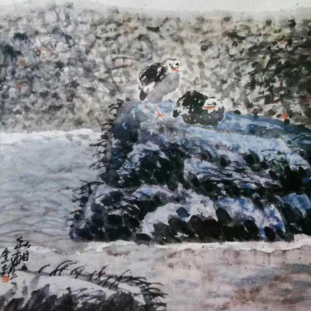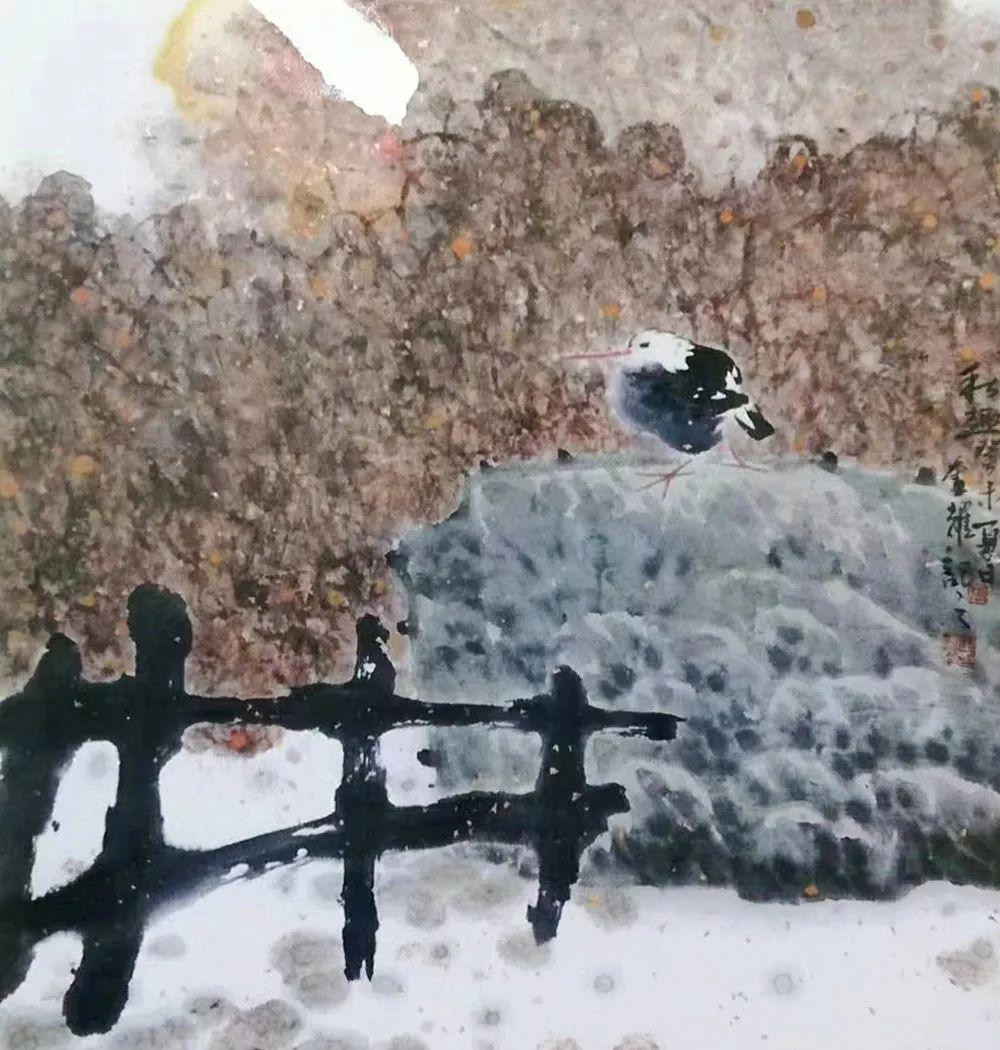 以花鸟画的样式去表现苍茫的境界感觉,是有其难度的,它需要某种突破与超越,用以扩大视野,拓宽内涵与外延,以表现由中国艺术传统而延伸出的生命诗情。我们看到,画家在作品营造的苍茫境界,是凭借了“荒寒”的完美因素的,在审美中的“荒寒”实际上是一种文化品位,虽然也是一种生命情调;比较而言,它显然比明媚妖妍的斑斓、缤纷之感要深刻得多,更具探入生命深层的动人力量。