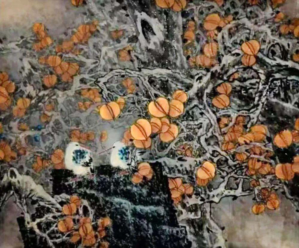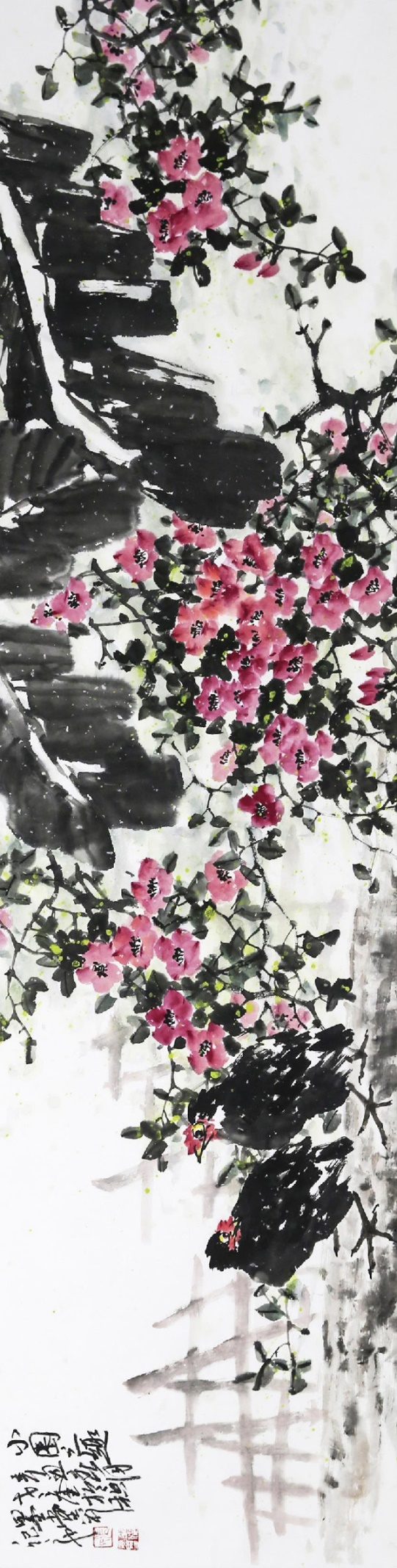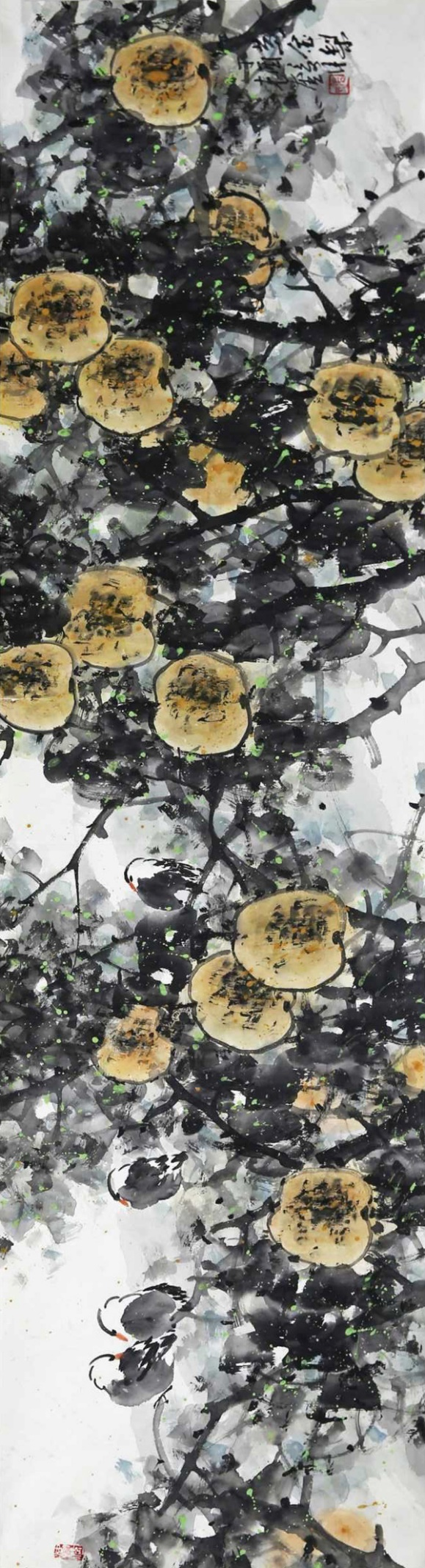 不能否认,审美情调中的荒寒与苍茫,及由此产生的种种意象——雨雪迷、秋风萧瑟、霜天寥落、寒塘鸟影等都是典型的荒寒之境的苍茫美。它表现的是时序变化、生命代谢的宇宙规律及其美感属性。它们同时也是面对真实自然存在本体时的苍然之悲剧感;在上述的作品中,花鸟意象间的苍茫美感的文体品格,除了生命意志的坚韧,自足世界的完善,还有一个最重要的内涵——即,它是人生感悟的结果。 张奎耀同时也画了一些色彩斑斓、明媚艳丽的作品,这些作品在表达一种欢快愉悦的同时,还体现岀蓬勃的生机。万物峥嵘的气息。