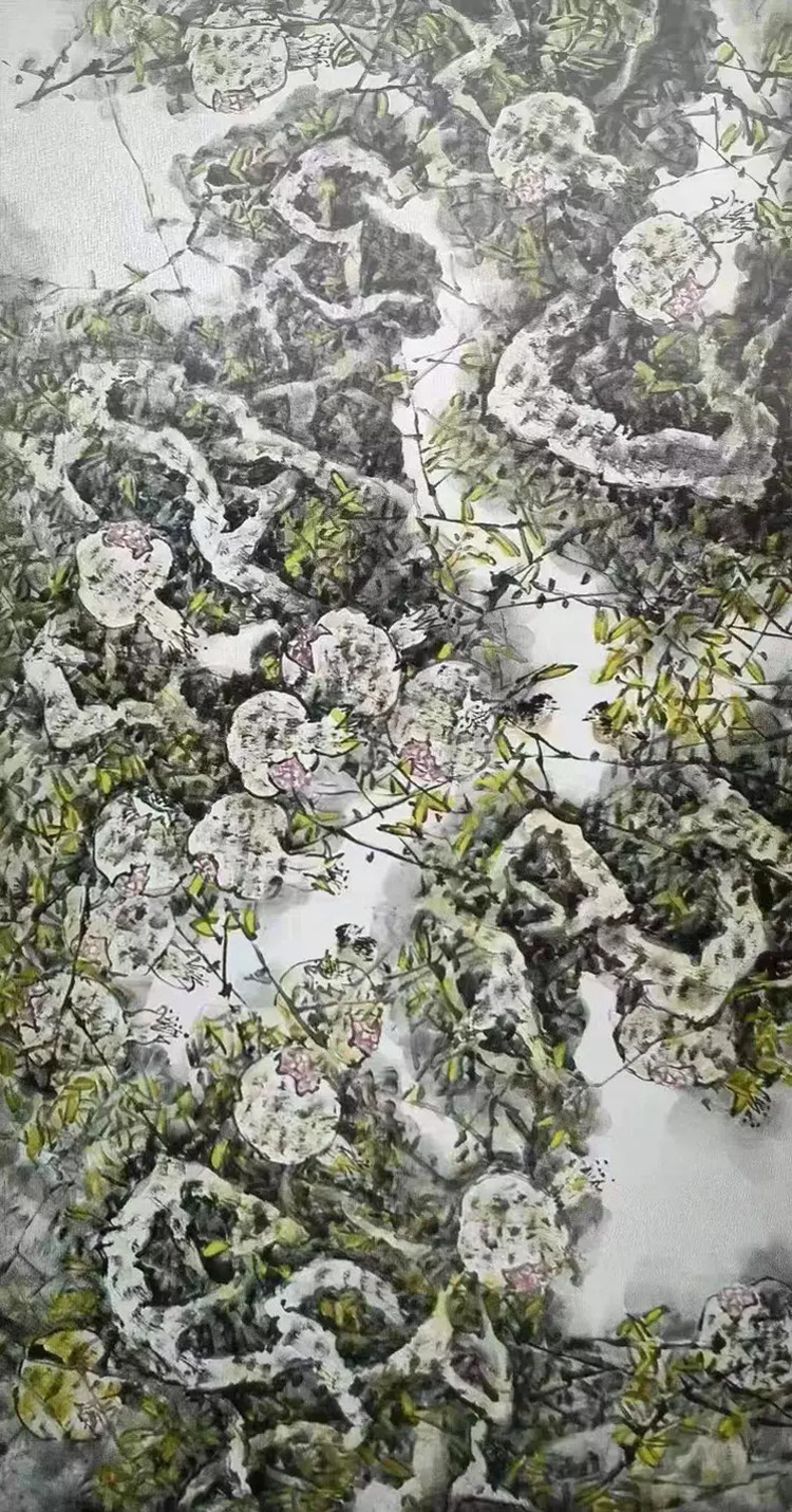 花枝迷离也苍茫 ——张奎耀的花鸟画 文/徐恩存 自宋以降,花鸟画因其高度的成熟而臻于完美,并日益体现为程序规范严格的刻板定势,表面为一种拘谨与自我萎缩的心态,心灵的丰富性与多样性都被禁锢为简单地符号表现与图式意义。 花鸟画家张奎耀的作品,以自己对世界的深刻感受,体验为前提,直指一种荒寒的境界,用以体现现代人对世界本质的感受,进而形成自己独特的笔墨表现方式,营造自己作品的总体感觉——苍茫。