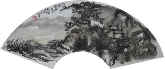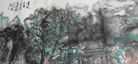 从整体看来,包洪波的山水作品结构严谨不乏空灵,气韵古雅不乏清新,他所作构图以“满”、“密”为主,直追古雅之韵的艺术取向。他的笔墨,极重笔势,以笔势去构筑重山叠水整体气势,活化和深化了饱满的神情意蕴,朴实直率、飘渺空灵的画风让人感受到一种高层次的主观精神状态,观之令人折服,细品意境无穷。