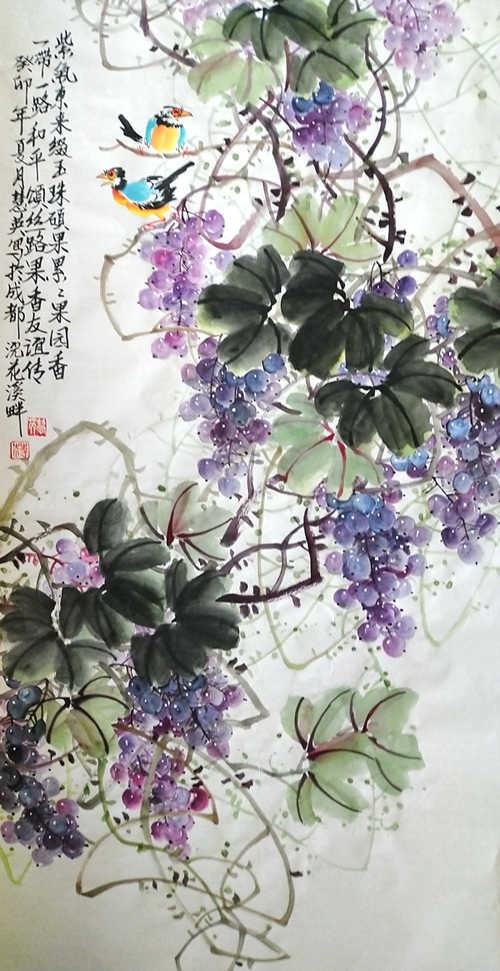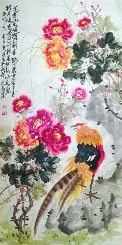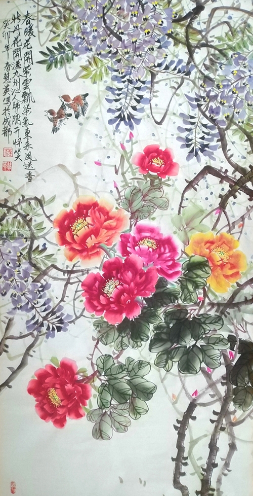 1997年,作品《鸟语花香》在北京展出,同年花鸟画在新加坡展出获银奖,并被聘为高级艺术顾问; 1998年,作品《金江两岸花盛开》在中国美术馆展出,同年参加新加坡神州艺术院主办的展览作品《啸震千山》获得特等奖; 1999年,作品《香溢九州》参加全国“国花杯”书画大赛获金奖。作品《富贵平安》入选北京中国邮政发行的跨世纪书画名家精品系列明信片,已全国发行。后来“鸟语花香”入选全国贺卡的发行; 2001年,作品《国色牡丹含苞放》参加中国近现代书画家作品展,在北京中国历史博物馆展出,并入选画册; ![]() 2002年,作品《一阵春风过江来》参加著名画家年展在台湾阿里山展出获一等奖; 2003年,作品《紫气东来》参加四川省美协画展获二等奖。 2004年,作品“唯有牡丹真国色,花开时节动京城”入选中国邮政发行的明信片。 2005年,作品“大地同春”刊登在国画家杂志 10 期上; 2007年,作品 4 幅入选华商杂志海外发行; 2008年 12 月,有 16 幅花鸟画作品入选中国邮政发行的个性化邮票; ![]() 2014年,出版个人专辑《蒋慧英作品集》。同年,中华艺术名家海外报刊,发表了最具潜力的艺术家,蒋慧英老师5幅花鸟画作品; 2015年,作品被《笔尖上的中国艺坛领袖》画册收录; 2018年10月,参加“大匠之心—全国书画名家作品展”,作品并入选《大匠之心—全国书画名家邀请展作品集》。作品多次被陈列馆收藏; 2019年作品入编《艺术为人民》作品集。 当代书画名家精品集《新时代新征程》; 2020年被北京京华阁书画院聘为常务理事,参加全国网展《大家风范》,出版个人画册,中国艺术家。由天津美术出版社出版的台历,蒋慧英老师六幅花鸟画入选台历。 ![]() 2021年,参加中央台二十一届大采风年度盛会获德艺双馨艺术家称号,并参加现场作画。中央台朝闻天下报道了蒋慧英老师,十七幅,花鸟画作品。蒋慧英移动画册。刊登了七十幅作品。出版了个人台历入编作品23幅。作品四幅入选中央台出版的台历。有两幅参加文化中国主题巡展。作品七幅入选《消费艺术与指南》。 ![]() 2022年,作品入选《中国近现代美术年鉴》。 2022年,作品58幅花鸟画参加了中央台制作的,非物质文化遗产蒋慧英数字博物馆。 作品《田园春光》在北京地铁全线展览。作品在中华英才网发布26幅。 ![]() 看蒋慧英女士的绘画作品,从虾趣图看到珠玑葡萄,从一池馨荷看到富贵当头,都有一种气韵生动的艺术魅力,画面质感特别干净,极是不落纤尘,一丝不苟的精湛。这难怪那么多的人喜欢看她的画,因为此种纤尘不染的画风,最能让人明心见性! ![]() 在当代画坛,中国画的画法有点儿乱糟糟的现象,一些人士画画有“乱涂乱抹”的习气,结果画出来的东西粗服乱头,不显雅观,没有赏心悦目的艺术属性。现在你去看蒋慧英女士的所有作品,都相当注意用心营造唯美的气氛,落笔定位准确,笔笔相生,笔笔到位,比如《花团锦簇满山川》这样的作品,既是执笔在手,运笔在心,心有竹成的塑造过程,所以画质天然,随心应手。 ![]() 还有《秋风拂过海棠红》这里面既没有涂得乱,也没有抹的浊,干干净净画天朗,清水濯洗绘气清,秋风秋韵,扑面盈心,如读过的一首唐诗,如诵过的一首宋词,越看越有滋味,极其耐读。作为一名女画家,蒋慧英女士为当代画坛奉献了非常令人陶醉的丹青佳作,让人在惠风和畅的气氛里游目骋怀,足以极视听之娱! ![]() 蒋慧英女士画画,画得这么臻美,如此干净,究其原因是与“专业”大有关系的。国画之法经过数千年的传承沉淀,形成了严谨的法度体系,必须像蒋慧英女士这样把传统画法作出精研覃思,才可以执笔作线条,让勾勒无有一笔糜软无力,无有一根线条成为散兵游勇!笔法精湛,善作骨风,比如画成的《孤芳不肯竞春艳》这件兰花作品,真可谓是骨法用笔,应物象形的典范!把兰花塑造得刚柔相济,清芬解秽,非常有精气神。在雅舍挂这样的一件作品,必定盈满文化气象,是谓雅俗共赏的上上品! ![]() 精湛的画法,除了有自我修炼的原因之外,还有法由师授的机缘。蒋慧英女士曾经师从王西林、马小松诸先生,得到口传手授,更好地觉悟了画道。又私娴齐白石画法,追求妙在似与不似之间的玄机要妙,不因似而俗,不因不俗而欺世,带着兼工能写的炉火纯青作花鸟,可再夺物象之精神,可以掠物象之体貌,所画牡丹最具独家特色!娇而不艳,枝味铺陈得相当天质自然,以求空间灵动大气,花头艳而不俗,不着丝毫烟火气,全是臻域仙子来! ![]() 纤尘不染绘丹青,万类之像显形神。她把牡丹的自然属性与文化内涵完美地统一在一起,看是一幅丹青美图,觉是吉祥富贵意,达成了雅俗共赏,可以装饰万家屏障的艺术魅力。所以她的作品参加展出是金奖之尊,收藏则为琼花玉蕊,是为当代美术的惊艳佳作,可以承载丹青文化春秋相传! ![]() ![]() ![]() ![]() ![]() ![]() ![]() ![]()
