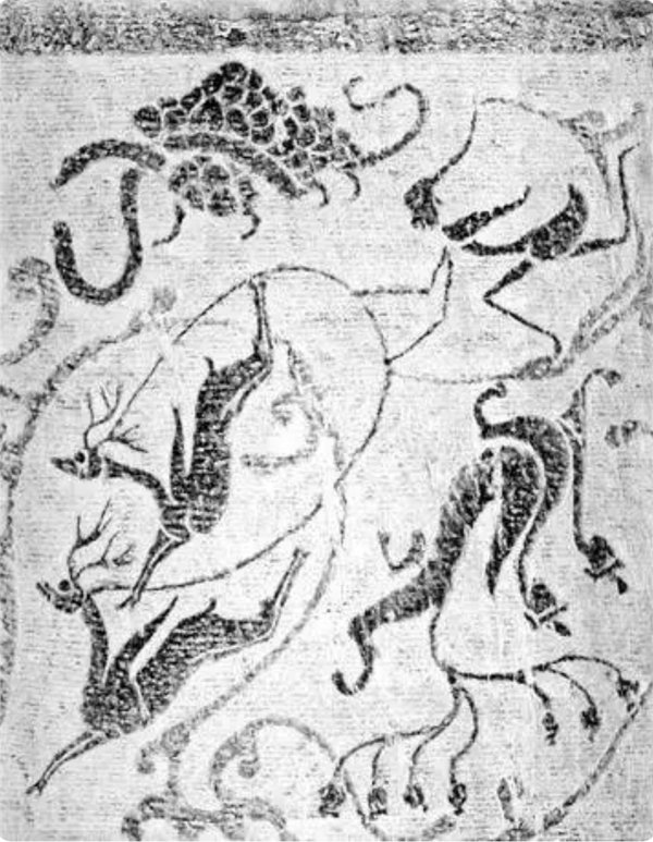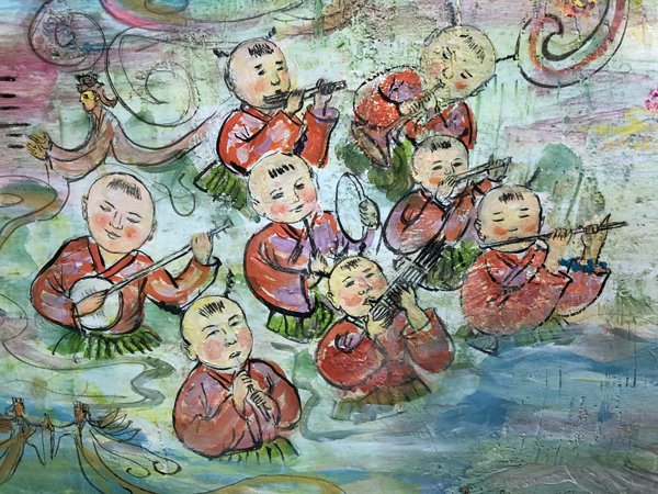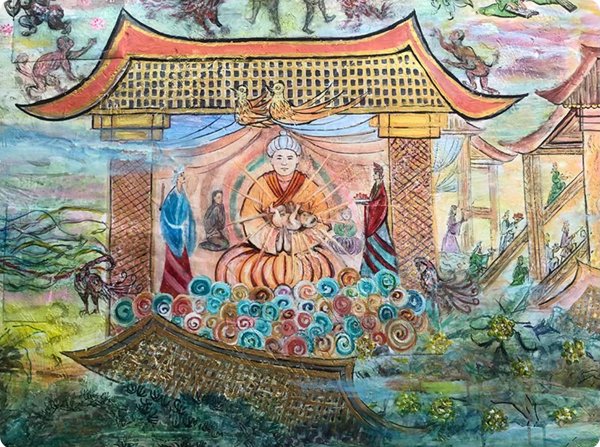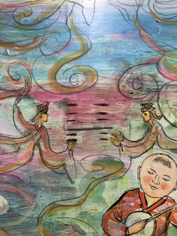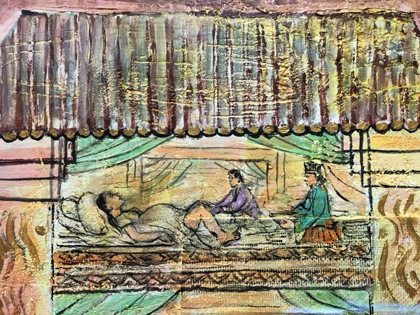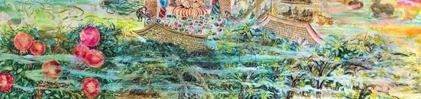 孔子诞生图局部(三吉树石榴、松柏、桂花图)