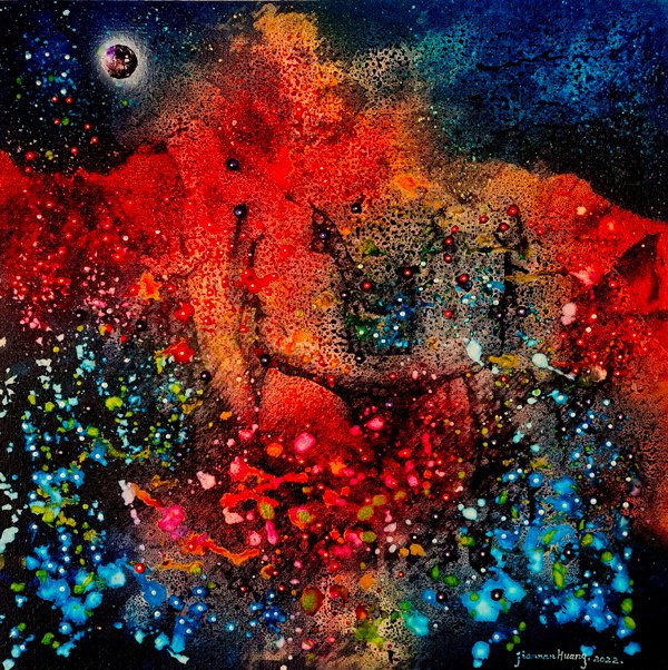 黄建南的画作多以大自然风光、景色、宇宙空间和梦境等为题材,丰富多元,涉及广泛。他的创作过程充满了科学精神,对色彩的把握、构图的布局、光影的处理都体现出了严谨的态度和科学的方法。