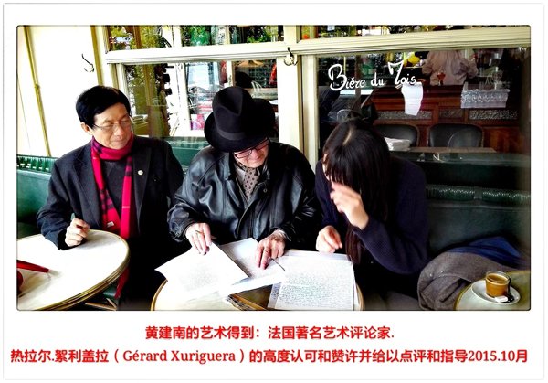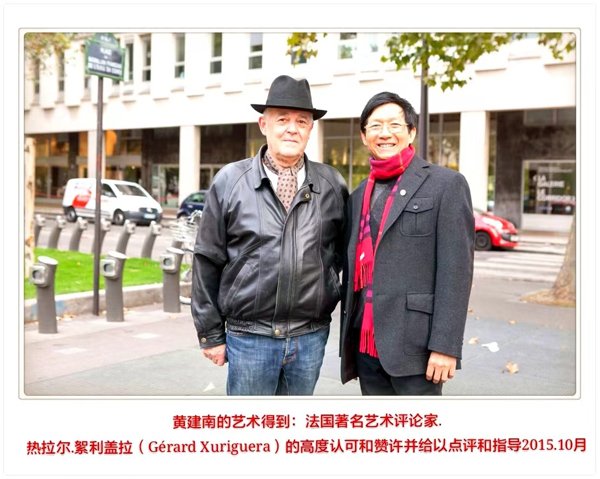 同时,他高度称赞黄建南的创作风格在世界艺术史上的地位,是“创立了独特的个人综合绘画系统和新体系”。